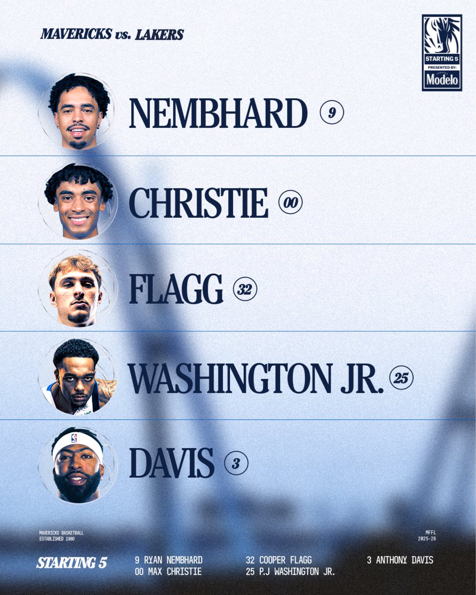 独行侠官方推特报道。莫德洛啤酒发布的本场比赛首发阵容如下:#MFFL