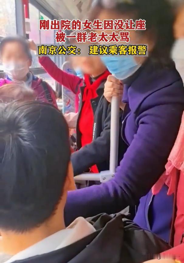 南京,一位女生做完手术刚出院,想省点钱坐公交车回家。身体虚弱的她找到一个位子,却被五六个大妈“盯”上了,非要女生让座,不然就展开辱骂。就这样,女生被骂了一路。甚至,还有一位大妈指着女生的脸骂:我看你这个样子,一点就不像有病住院!一旁的公交车司机实在看不下去了,可惜自己没有执法权,直接建议女生赶紧报警吧! 据南国早报11月27日报道,女生的男友也是,照顾女友几天几夜没有合眼,刚准备闭目养神一会,也被这几位大妈给“问候”了一顿,两位年轻人真的是要急的哭起来。 人吃五谷杂粮,难免会生病,就算是身体硬朗的小姑娘,也会有要住院做手术的一天。南京的这位小姑娘就是,住院一礼拜做手术,最近办理了手续准备出院。 因为做手术已经花费了不少钱,女孩子跟男友商量,“要么咱俩就不打车了,节约点钱。我们可以去坐公交车啊,正好顺路能到家。” 男友很赞同女友的想法,二人就慢慢来到医院附近的公交站台等车。上车之后,二人看到有座位,就赶紧坐下来准备休息。 虚弱的女友很快就睡着了,而一旁的男友,看着也很疲惫,这段时间来,一直都是他熬夜照顾着自己的女友,趁着搭乘公交车的机会,他也准备闭目养神偷个闲。 下一站的时候,上来了一群大妈,大概有五六个人。这几位大妈上车之后,眼神直勾勾的就盯着女孩的座位,她们慢慢靠近了这对情侣。 眼看着情侣并没有让座的意思嘛,这几个大妈就直接开始阴阳:“哟!现在的年轻人素质真高啊,见到长辈都不让座了!” 女孩子被眼前围攻的几位阿姨吵醒了,醒来之后赶紧解释,自己刚开刀出院,身体的缘故,所以不能让座。 听到女孩子这话,意思就是不让座咯!这几位阿姨可不答应,你一言我一句的开始围攻人家女孩:“生病吗?我看你这个病人好的很呐!”“人最怕的就是没病装病呢!不想让就直说啊!” 就这样,这些阿姨直接就指着女孩子的鼻子开始辱骂。女孩实在是虚弱的很,根本无力搭理。一旁的男友因为照顾病患其实也很虚弱,但是男友也因此遭罪,被这些大妈称为“毫无良心的人。” 后排有乘客看不下去了,这些自认为是长辈的人,也不能直接骂人家一路吧,于是就站出来帮女孩说了两句。 这下可不行,大妈们转头就开始骂这位好心的路人:“要你多管闲事!坐好你的公交车吧!” 然后继续回头围攻女孩,那架势,似乎就是想要把人家姑娘给吃掉。 前面的公交车驾驶员实在是听不下去了,但是作为司机,他并没有执法权,只能给女孩子建议:“孩子,快点报警吧!” 这么一说,这一群大妈的气焰才算收敛了半分。站在道德制高点、指责病中的弱势群体,倒不妨让大家一起来评判一下,这些嚣张跋扈的大姨们,到底对不对? 女生刚出院坐公交车,身体非常虚弱。遇到一群大妈没让座,大妈们就开始辱骂女孩,大妈的行为是否违法呢?面对大妈的辱骂行为,女孩应该如何维权呢? 第一、大妈的辱骂行为已经违法。 根据《治安管理处罚法》第四十二条规定,公然侮辱他人、随意辱骂他人将会被处以5-10日行政拘留,并且处以500元以下罚款。 女子出于自身原因,由于刚刚做完手术出院,坐公交时没有礼让,因此遭到五六名大妈的群攻。并且大妈们长时间进行辱骂,这样在公共场所进行公开辱骂的行为已经构成违法,将会面临法律的处罚。 第二、女生可以依法维权。 面对大妈的持续辱骂,女生可以根据《民典法》第1024条规定,依法维权。如果辱骂的行为持续发生,则可能构成侵犯名誉权,骂人者需要做出民事赔偿。 当辱骂的行为正在发生是,女生可以直接拨打110,并且直接录音、拍摄视频,后期还可以找其他乘客作证,便于后期继续追责。这些骂人者必定要付出法律代价。 乘坐公共交通工具,礼让属于道德范畴,即便不让座也不构成违法,何况是一位弱势女子,倒也不必如此群起而攻之。相信这些大妈们,总有一天会因为自己的无理取闹而遭受法律的严惩。 对于本案,大家都怎么看呢?