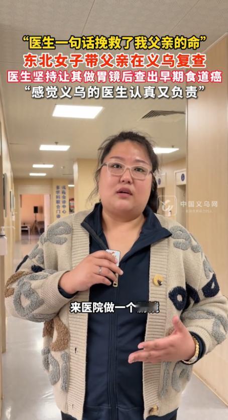 “这医生火了!”浙江义乌,一东北老人来医院做肠镜,医生检查后,语重心长的询问他喜不喜欢吃热的东西,得到肯定的回答后,医生又让老人再去查一下胃,没想到,竟是食道癌早期!如果不是医生的坚持,老人的食道就要被全部切除。 据中国义乌网11月26日报道,浙江义乌,一个六十多岁、从东北过来的老大爷,最近总觉得肠子不得劲儿,就让女儿陪着去医院看看。 这本是老年人常有的事,可这次检查,却意外地拆除了一颗埋在身体里的“定时炸弹”,负责接诊的是一位姓黎的医生。 按照流程,他给大爷安排了肠镜检查,在检查过程中,黎医生仔细观察着屏幕上的影像,发现大爷的肠道确实有些老毛病,但都算不上严重,通过调理就能改善。 就在探头缓缓退出,即将结束检查的时候,黎医生的目光在食管入口处短暂停留了一下,凭借多年的行医经验,他敏锐地察觉到那里的黏膜颜色和状态似乎有那么一丝不寻常。 检查结束后,黎医生没有像往常一样简单地嘱咐几句就让病人离开,他把大爷和他的女儿叫到一边,开始详细询问老人的生活习惯。 他了解到大爷是东北人,口味偏重,尤其偏爱吃滚烫的食物,喝茶也必须是刚冲泡的热茶,这个看似平常的饮食习惯,却让黎医生心里那个不好的预感愈发强烈,他知道,长期食用过烫的食物,是食道癌的一个重要诱发因素。 于是,黎医生非常严肃地向大爷的女儿提出了一个建议:再给老人做一个胃镜,重点检查一下食道,这个突如其来的建议让女儿心里犯起了嘀咕。 他们明明是来看肠胃的,肠子的问题医生也说不大,怎么又要多做一个胃镜检查?她下意识地觉得,这或许是医生想让病人多花钱的一种套路,心里生出了一丝抵触和怀疑。 黎医生立刻就看穿了她的心思,他没有不耐烦,而是非常耐心地进行了解释,他告诉她,根据她父亲常年爱吃烫食的习惯,结合刚才肠镜路过时观察到的食管黏膜的细微异常,存在着患上食道疾病的风险。 他强调,这只是一个预防性的检查,目的是为了排除隐患,如果有问题,就能做到最早发现和治疗,预后效果会非常好,如果没问题,那大家也就彻底安心了。 这番推心置腹的话语,充满了专业判断和真诚关怀,打消了女儿心中的疑虑,她意识到医生不是在为医院创收,而是真正在为父亲的健康着想,她和父亲商量后,决定听从医生的建议。 胃镜检查的结果很快出来了,报告单上赫然写着:食道癌(早期),看到这几个字,女儿瞬间感到一阵后怕,双腿都有些发软。 她庆幸自己最终选择了相信医生,否则后果不堪设想,如果等到父亲出现吞咽困难、胸口疼痛等明显症状时再来检查,病情可能已经发展到中晚期,治疗难度和病人的痛苦都会大大增加,甚至可能需要切除整个食道。 幸运的是,病灶被发现在萌芽阶段,癌细胞尚未扩散,经过及时的微创手术治疗,老爷子的身体恢复得很快,生活质量几乎没有受到影响。 出院那天,女儿怀着无比感激的心情,为黎医生送上了一面锦旗,她觉得,这位医生不仅治好了父亲的病,更挽救了他们整个家庭的幸福。 这件事在网上传开后,引起了巨大的反响,许多人都为这位医生的责任心和敏锐洞察力点赞,在这个快节奏的时代,人们去医院看病,常常会遇到流水线式的问诊,医患之间缺乏深入的沟通和信任。 大家既害怕医生不负责任耽误病情,又担心医生为了利益而过度检查,而黎医生的行为,恰恰展现了一名优秀医者应有的品质:他不仅具备扎实的专业知识,更拥有一颗为病人着想的仁心。 他没有因为食道不属于肠镜的常规检查范围而忽略异常,也没有因为病人家属的初步怀疑而放弃自己的专业判断。 其实,一个好医生能带给病人的,远不止是治愈疾病本身,他的一句善意提醒,一次耐心的解释,一份负责到底的坚持,都可能改变一个人的命运,维系一个家庭的完整。 我们都希望在自己或家人最脆弱无助的时候,能遇到这样一位值得托付生命的好医生,这不仅仅是对医疗技术的要求,更是对医者仁心的期盼。 希望这样的正能量能被更多人看到,让医患之间多一些理解和信任,少一些猜忌和隔阂。 信源:中国义乌网2025-11-26——仁心仁术,敬职敬业!义乌医生一句话挽救患者生命
