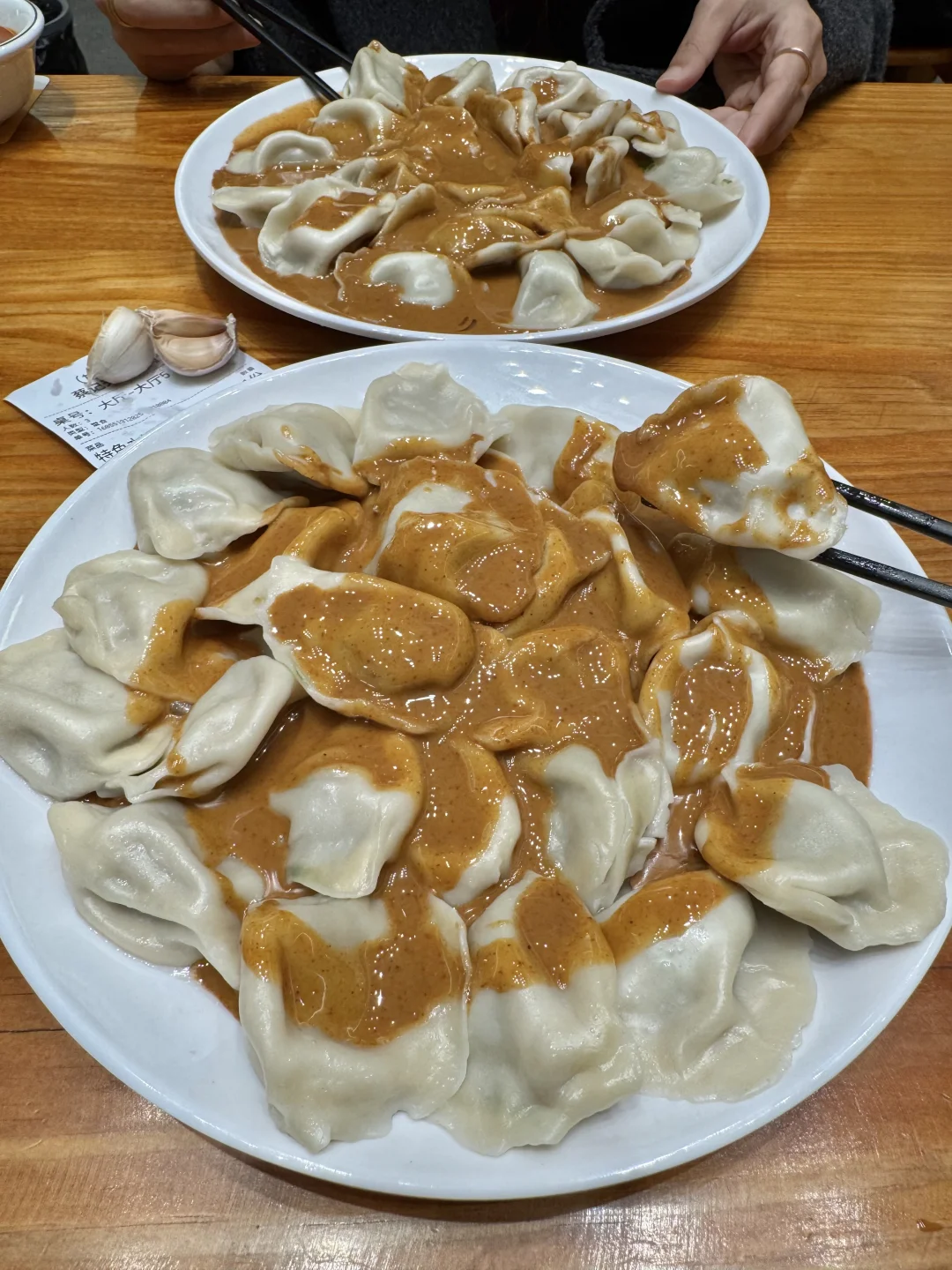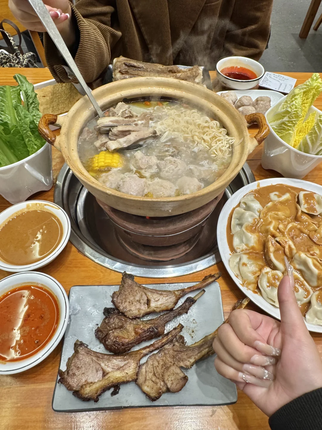 降温了吃正合适!门口热气腾腾的炉子炖着羊肉! 香十里地了😭 每次来先点一锅羊肉炉 先喝汤再吃肉,羊肉软烂入味、真的不要太舒服。。。 饺子淋上麻酱可香了,一口接一口停不下来!!还有羊棒骨,外焦里嫩直接香迷糊了