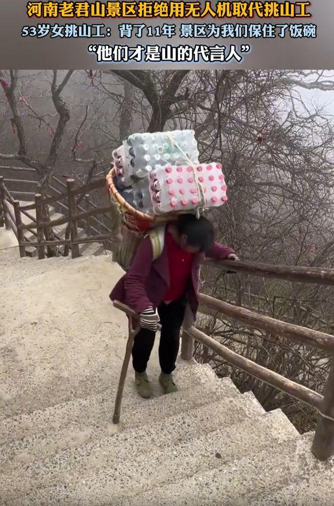 老君山坚决不让无人机代替挑山工。为什么呢?说白了,这事儿账不能光算电费和油钱。 那根扁担两头,一头挑着山上的货,另一头挑着的,可是一个个家的开销。是孩子的学费,是家里的柴米油盐。景区要是图省事全用了无人机,这些老师傅们上哪儿找这么一份踏实收入去? 所以这么一想就明白了,景区这么做,是心里装着人。技术再新再好,也不能把干活的人一脚踢开。得让这些靠山吃饭的老师傅们,能继续凭力气挣钱,稳稳当当地把日子过下去。 山还是那座山,但有了这些一步一步往上走的人,才有了活气儿,才有了咱心里觉得最踏实、最暖和的那股人间烟火气。 老君山 无人机挑山工