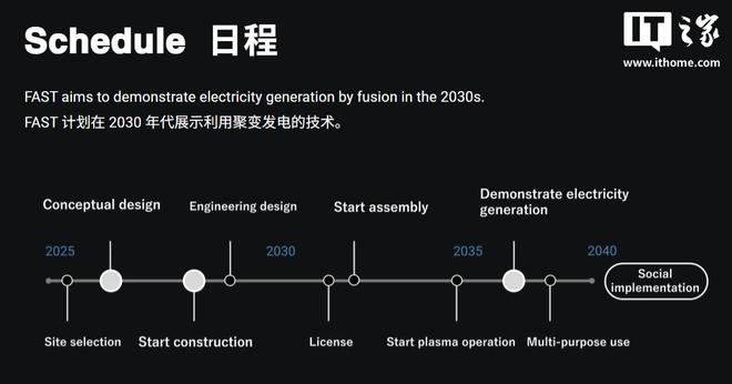 根据最新披露的时间表,项目组计划在2028年前完成工程设计报告(EDR),并在此后启动设施建设,最终目标是在2030年代实现核聚变发电演示。