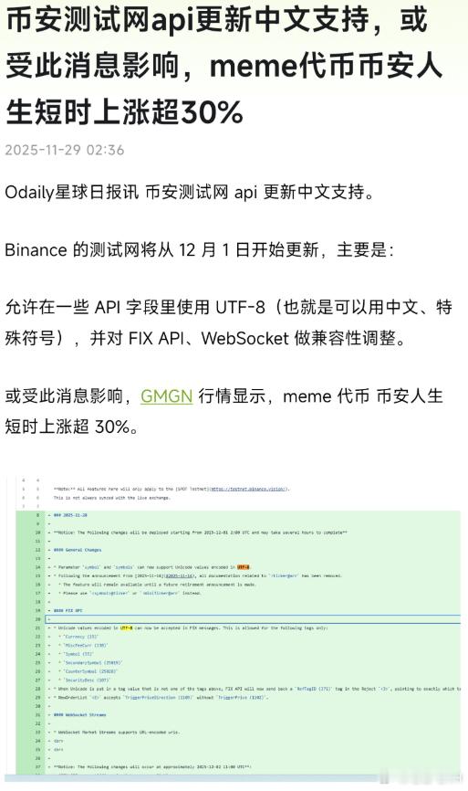 又是熟悉的剧本:今天又被扒出币安测试网 API 更新已支持中文 UTF-8,紧接着币安人生直接30%起飞。每次放点上币风声→社群狂欢→拉一波→冷却→再放风声……现在大家都已经心知肚明:上现货是大概率事件,但问题也正出在这儿——预期被反复预支到极致。市场上已经没人怀疑它会上,目标价也早就锚定在上现货那一刻。一旦真上了,没有超预期的新料,大概率就是:利好兑现 = 见顶出货,俗称“浇给”被预热10次的币,上线那天往往是最危险的,所以现在冲得越欢,后续可能跌得越惨。小心别变成最后那根接力棒。