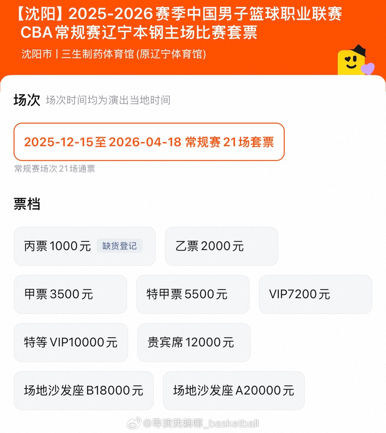 订闹钟抢票的时代过去了,辽宁男篮主场套票今天发售,除了丙票其余都有不少剩余,之前几个赛季一票难求的内场沙发也没有人抢了