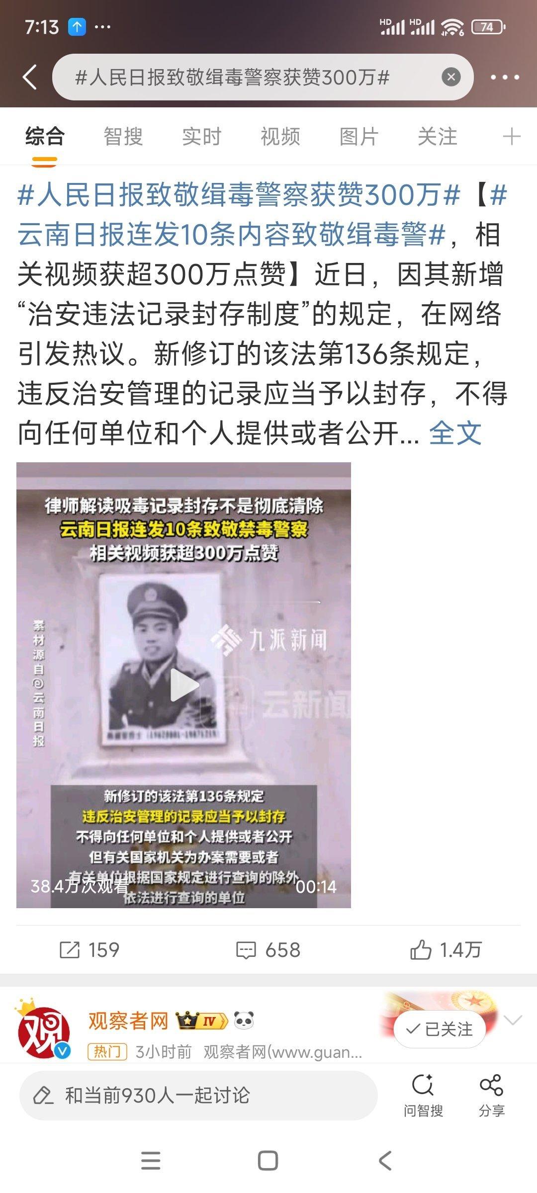 人民日报致敬缉毒警察获赞300万 多发图,少打字,免得系统审核,又把给搞没了图5图6,系统隐藏了我的两条微博云南禁毒 ,南通文旅 ,云南日报连发10条内容致敬缉毒警 ,热点观点