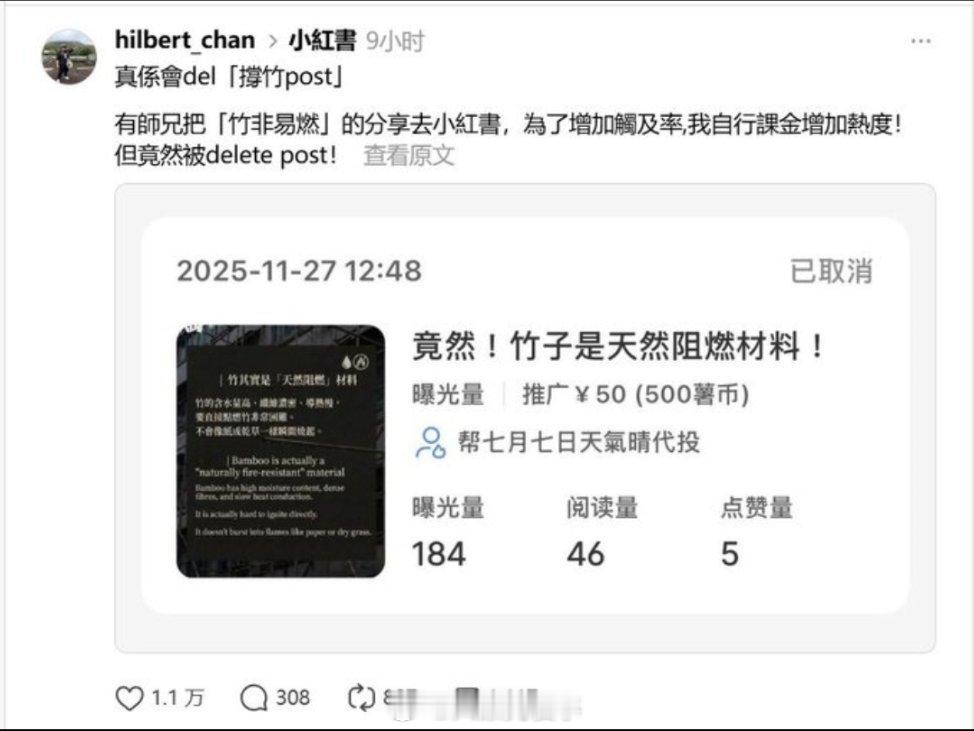 香港人还有一个特别有意思的事是,他们还真打算在小红书上向大陆网友科普什么竹棚,什么竹子烧不起来的好处。