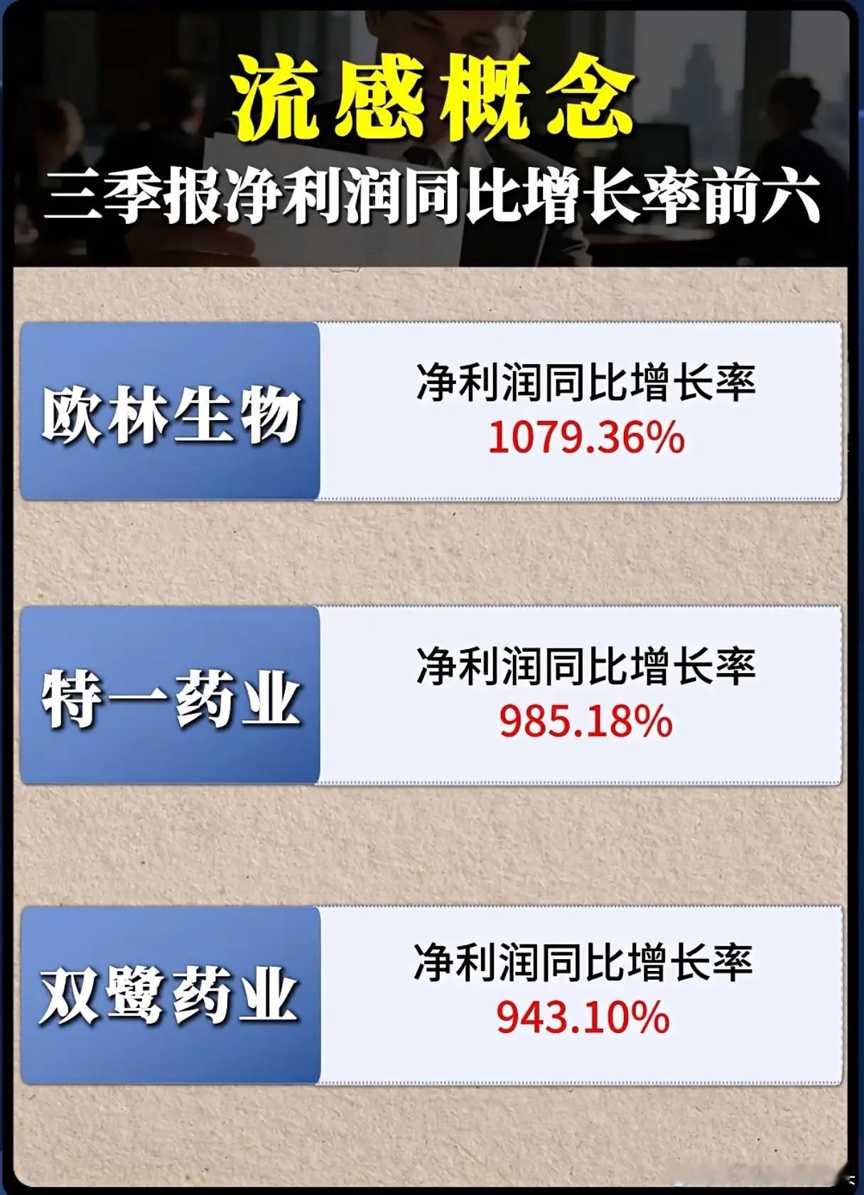流感季“药”起飞?这些药企三季报净利暴增超6倍,最高涨10倍!流感高发季一来,医药板块又成了“香饽饽”?最新三季报数据里,流感概念药企的净利增速直接“杀疯了”——前六名的同比增长率全在300%以上,最高甚至飙到1079.36%!欧林生物以1079.36%的增速稳居榜首,相当于去年赚1块今年赚11块;特一药业、双鹭药业紧随其后,增速也逼近10倍。而嘉应制药658.50%、易瑞生物362.49%、翰宇药业305.00%的涨幅,同样是“跳级式”增长。这波爆发并非偶然:流感季带来的感冒药、检测试剂等需求激增,叠加部分企业新品放量、成本控制优化,共同推高了利润。但值得注意的是,这类增长往往和季节性需求强绑定,后续能否持续,还要看产品管线的长期竞争力。从数据里能明显感受到:医药赛道的“脉冲式机会”,总能在特定需求周期里精准爆发。而这些企业的亮眼表现,也侧面反映出公共卫生需求背后的产业红利。