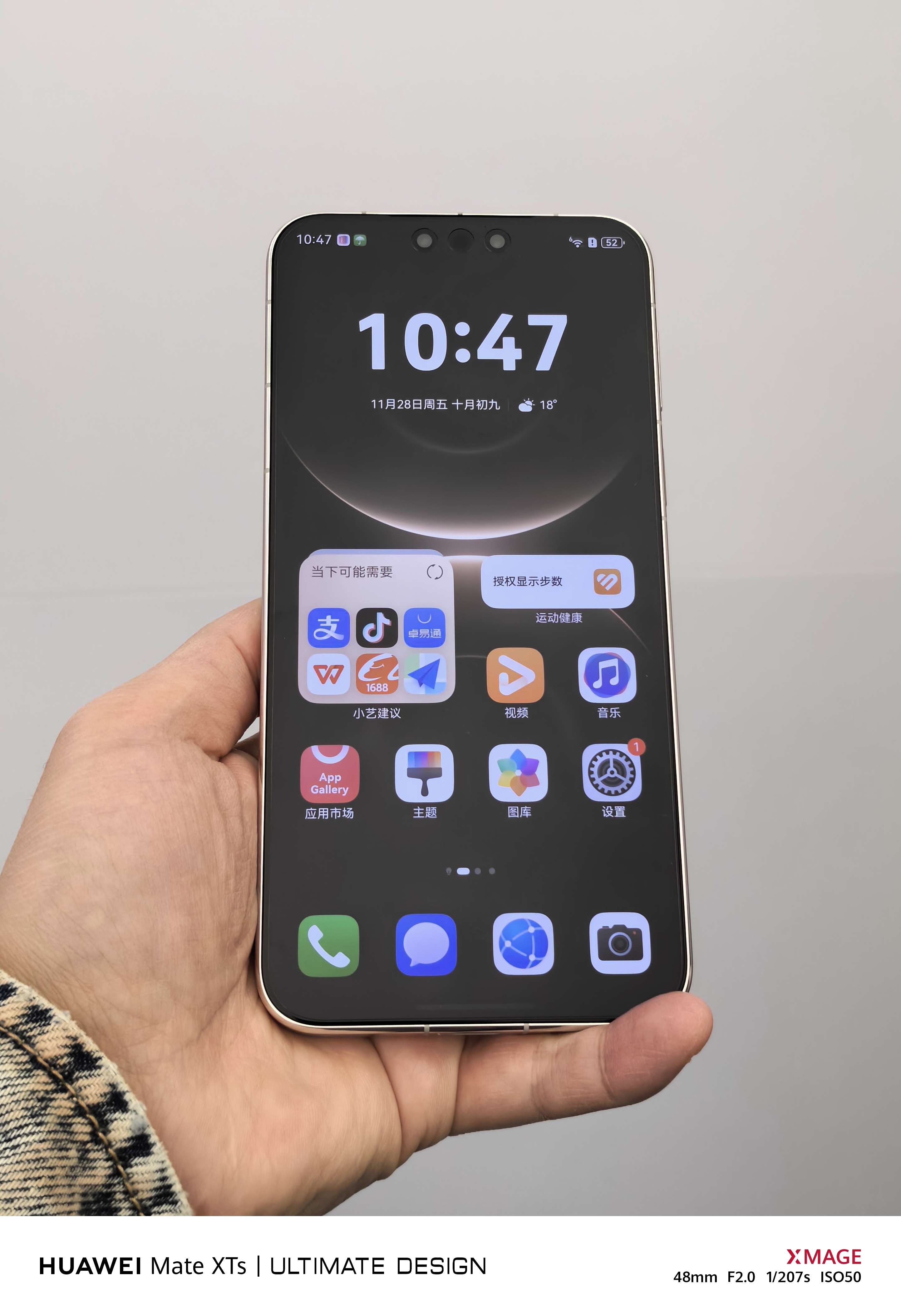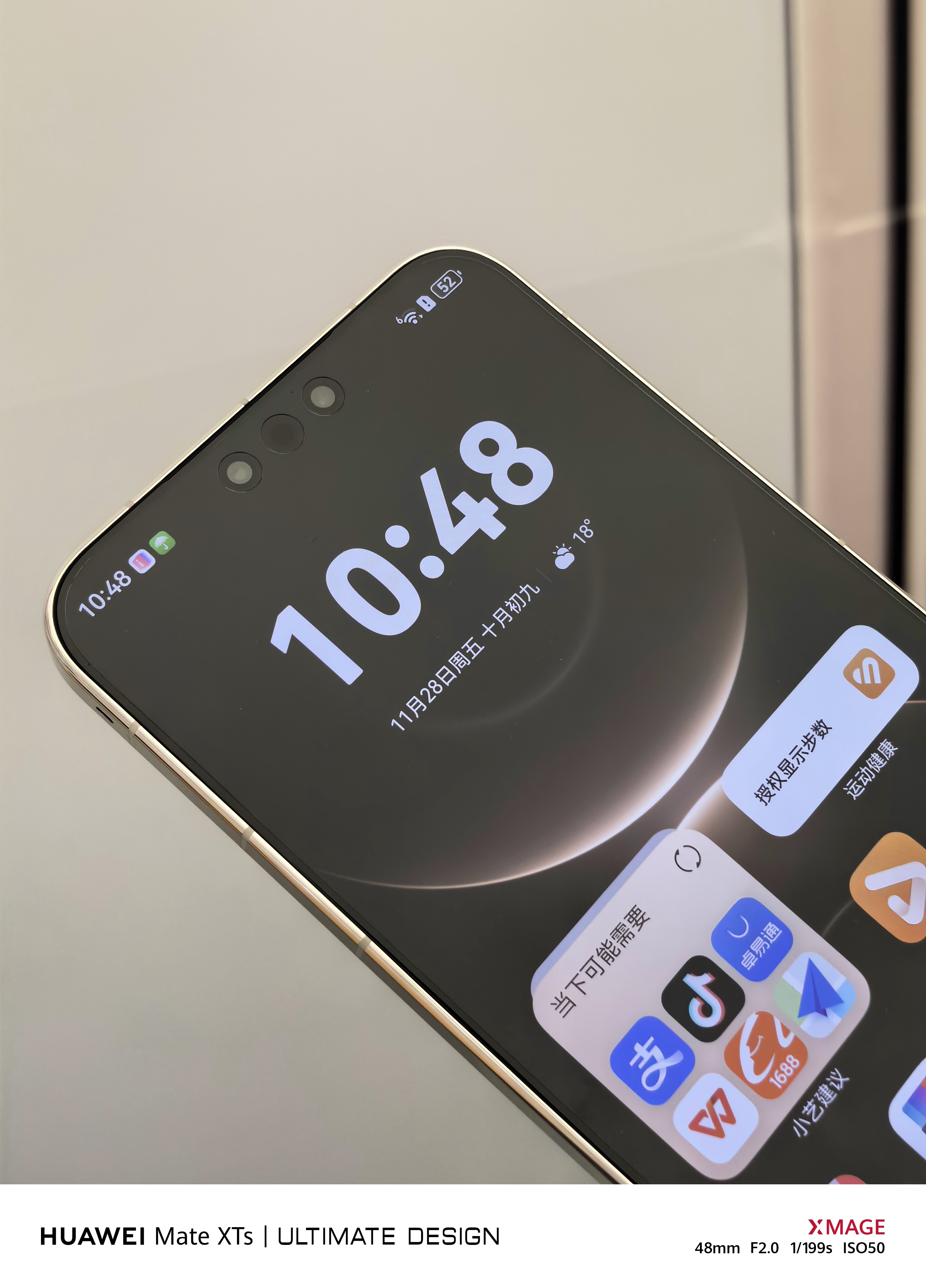 华为Mate 80 Pro Max极昼金真机上手图:子弹兄昨天早上一大早,就去华为珠海富华里授权体验店提的新机,极昼金色的Mate 80 Pro Max 16+512G一台!怎么样,羡慕我了吗?