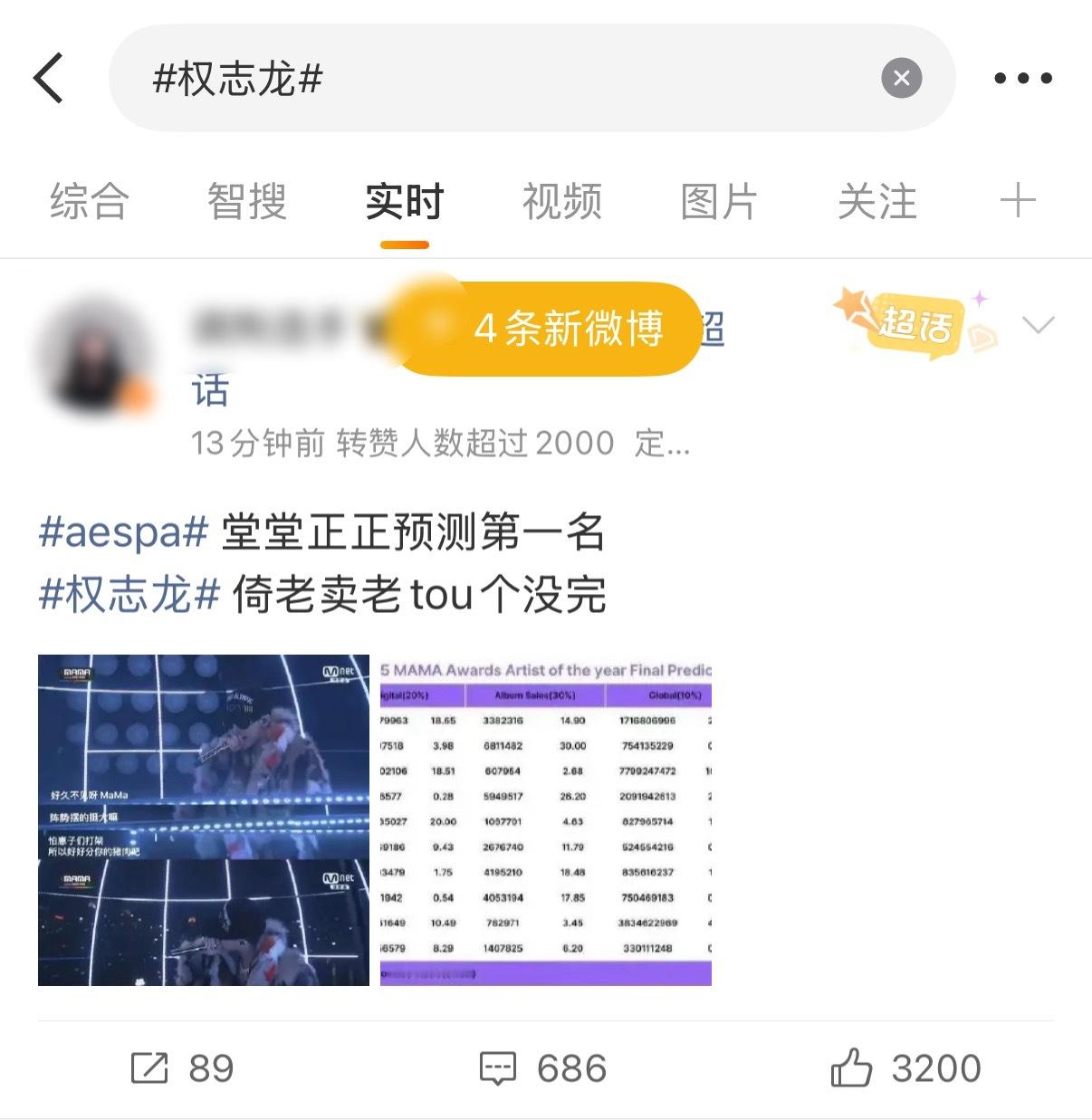 权志龙在 MAMA 官号底下评论了“👎…”是不满意 MAMA把属于 aespa