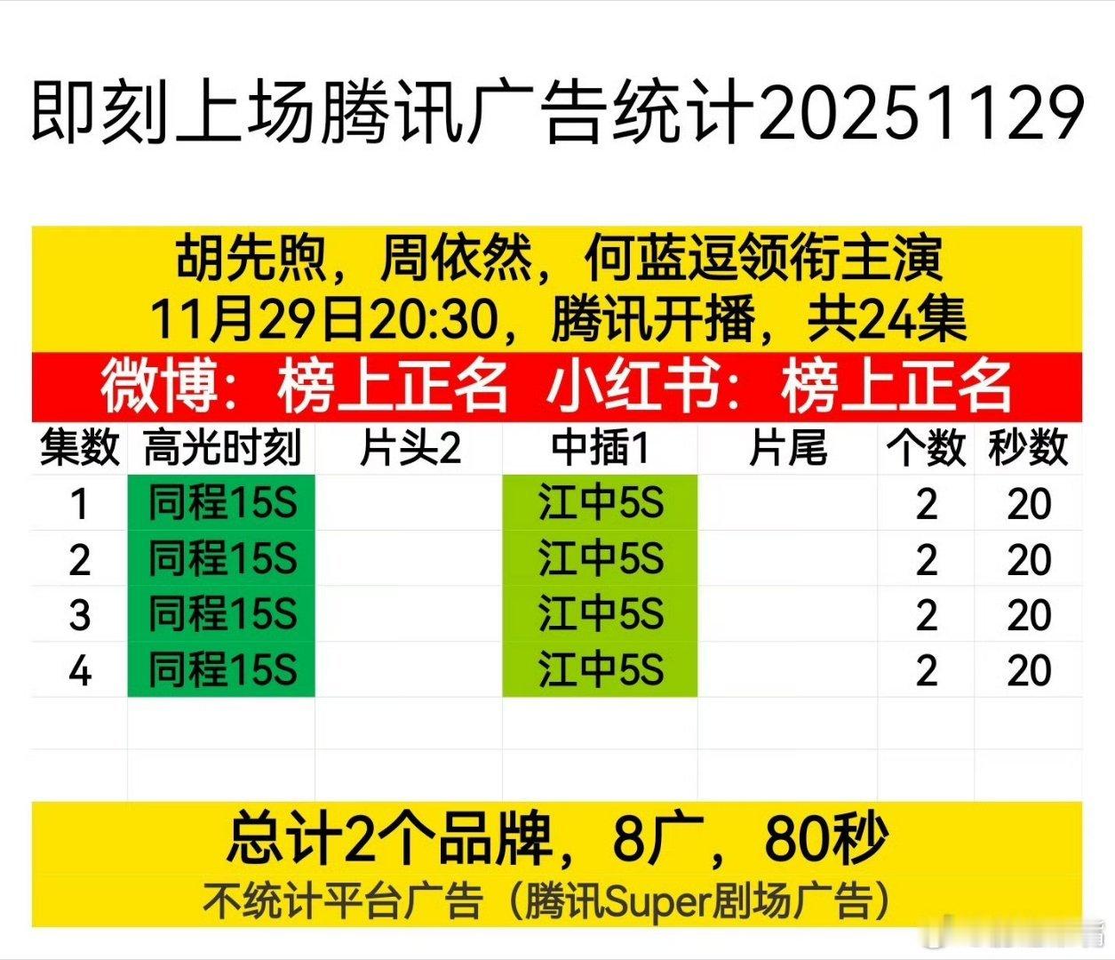 即刻上场 胡先煦 周依然《即刻上场》今日开播,首日网播广告数:开局2广!