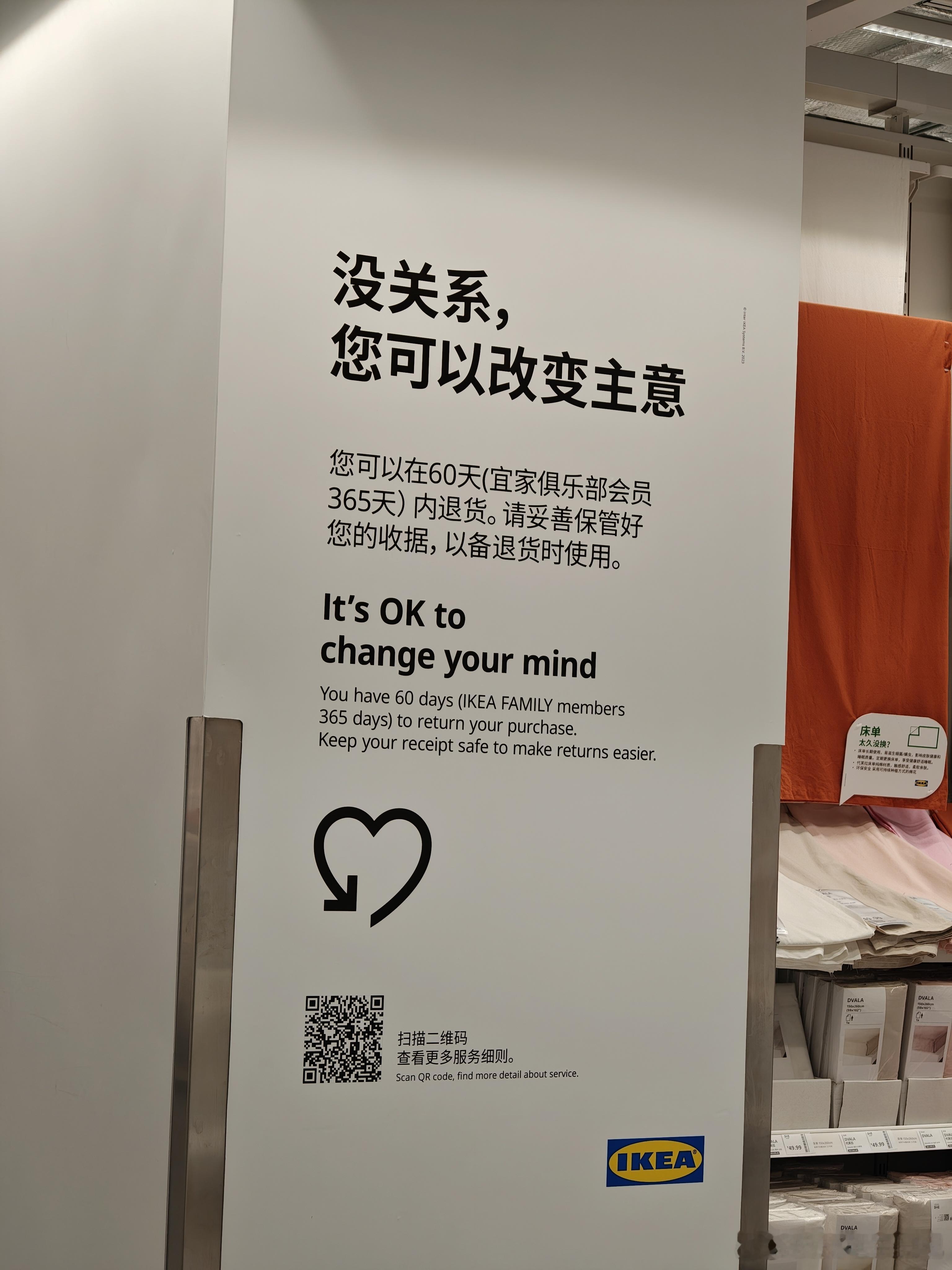 之前听说过无数次的宜家今天却是我第一次正儿八经地去逛关键之前也没人告诉我它这么好逛呀…有几点印象很深:❶图 5 应该是宜家的核心产品思维之一,产品优质、精致、实用,但是只赚取合理的利润(坚持走大众路线);❷产品上各种的标签,告诉你怎么用,怎么上手,需要注意什么事项(主打细心、贴心和省心)❸墙上适当的位置,总会有宜家的各种Tips,态度上谦逊有礼,让人一眼看上去就很舒服,很容易接受,这也可以看作是企业文化的一种春风化雨般的宣传,反正我对这企业的好感度,是倍增的。❹在品类的齐全度上,真挑不出任何毛病了,关键还会做场景化的 demo,例如图 1~3,针对卧室、厨房、客厅,给你做了好几套样板间,喜欢哪套,直接跟工作人员说,按照你的房型,直接给你安排到位了! ❺逛累了,里面随便坐随便躺,食品区的 1 元的冰淇淋和鱼丸都不错,推荐品尝❻另外也帮那些不怎么了解宜家的朋友们,搞清楚了两件事:一是宜家可提供全屋定制服务。二是宜家的软装确实有点独孤求败的意思,而如果非要说短板的话,我觉得在全屋智能家居,还差了点意思(毕竟欧洲嘛,已经错过了互联网革命和 AI 革命,可以理解),如果在整屋定制图省事这块,我个人会相对推荐华为的全屋定制(大牌有保障,技术也确实 nb)。