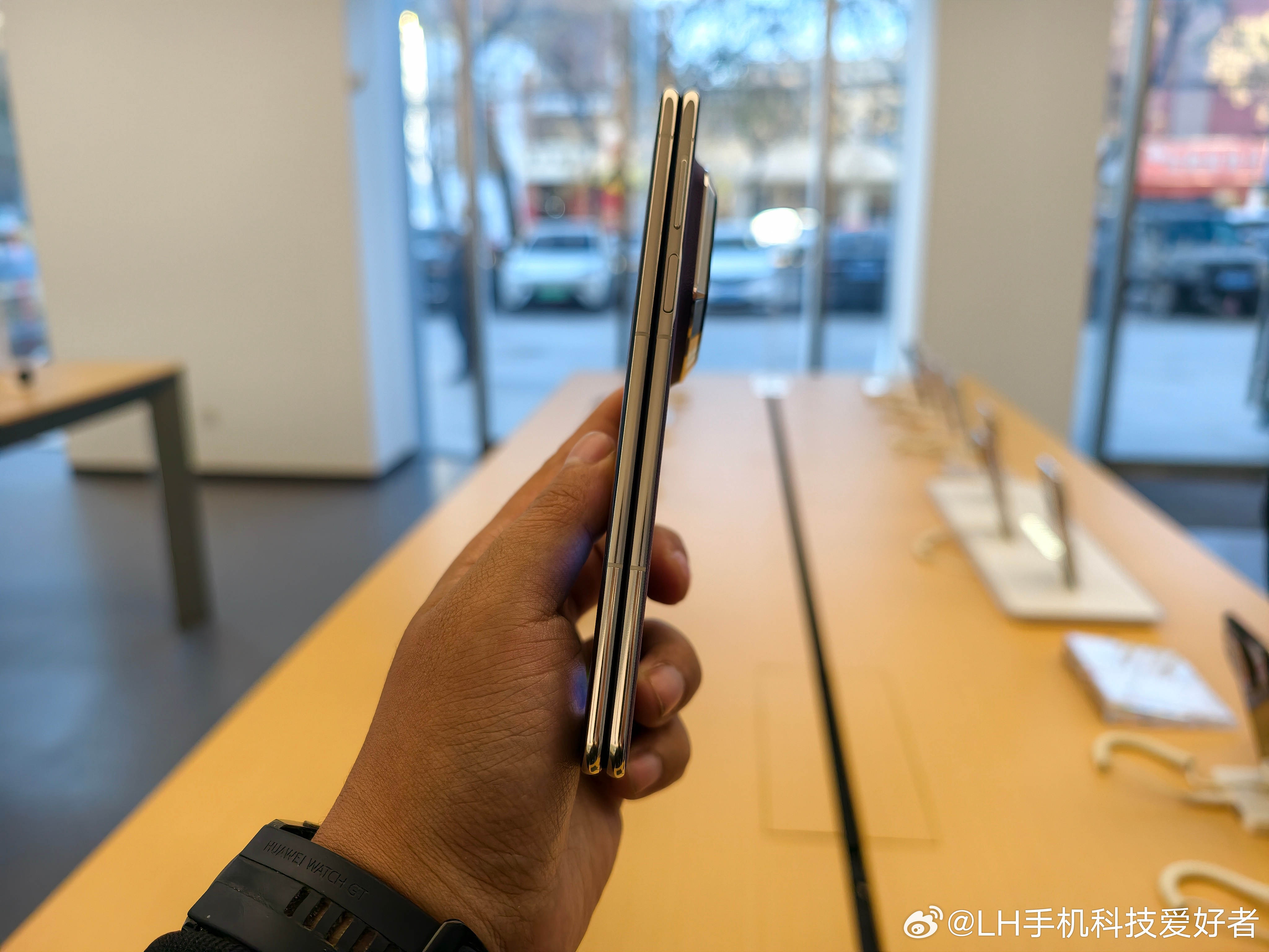 华为MateX7真机实拍,外屏是曲面设计,手感还是可以的,厚度和重量在折叠屏手