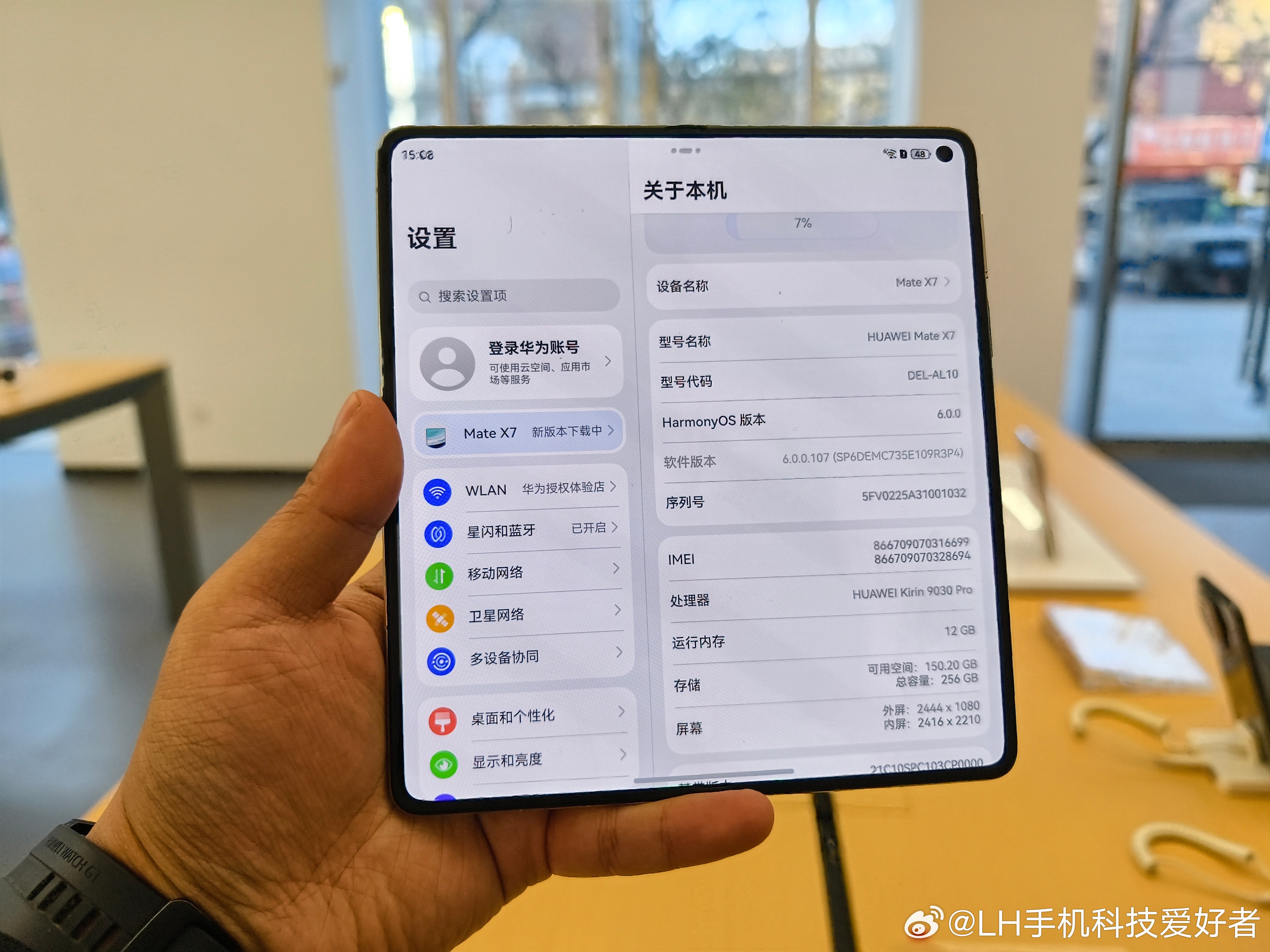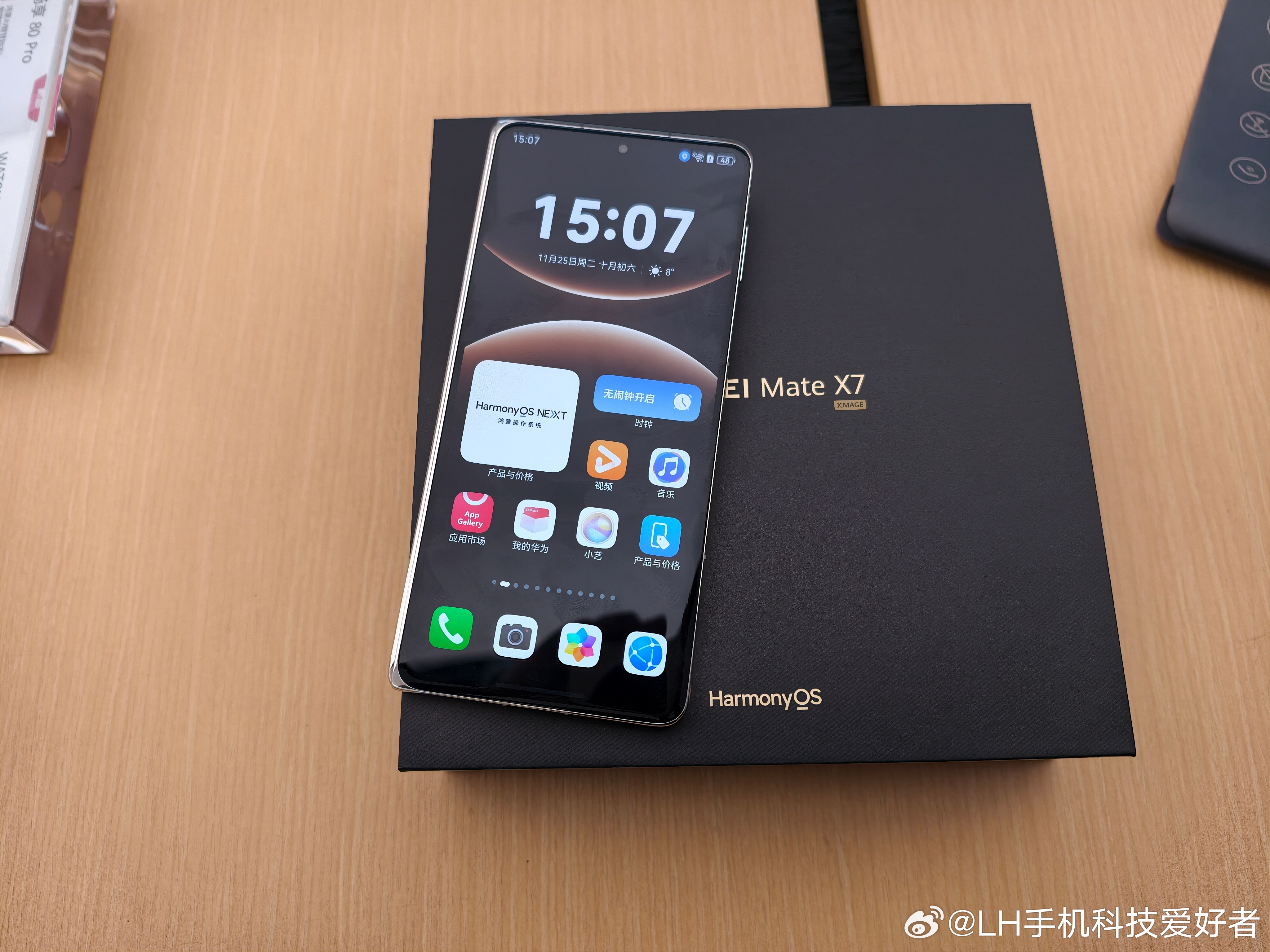 华为Mate X7真机实拍,外屏是曲面设计,手感还是可以的,厚度和重量在折叠屏手机中做的也还行。满分10分的话,这个设计大家能给多少分?