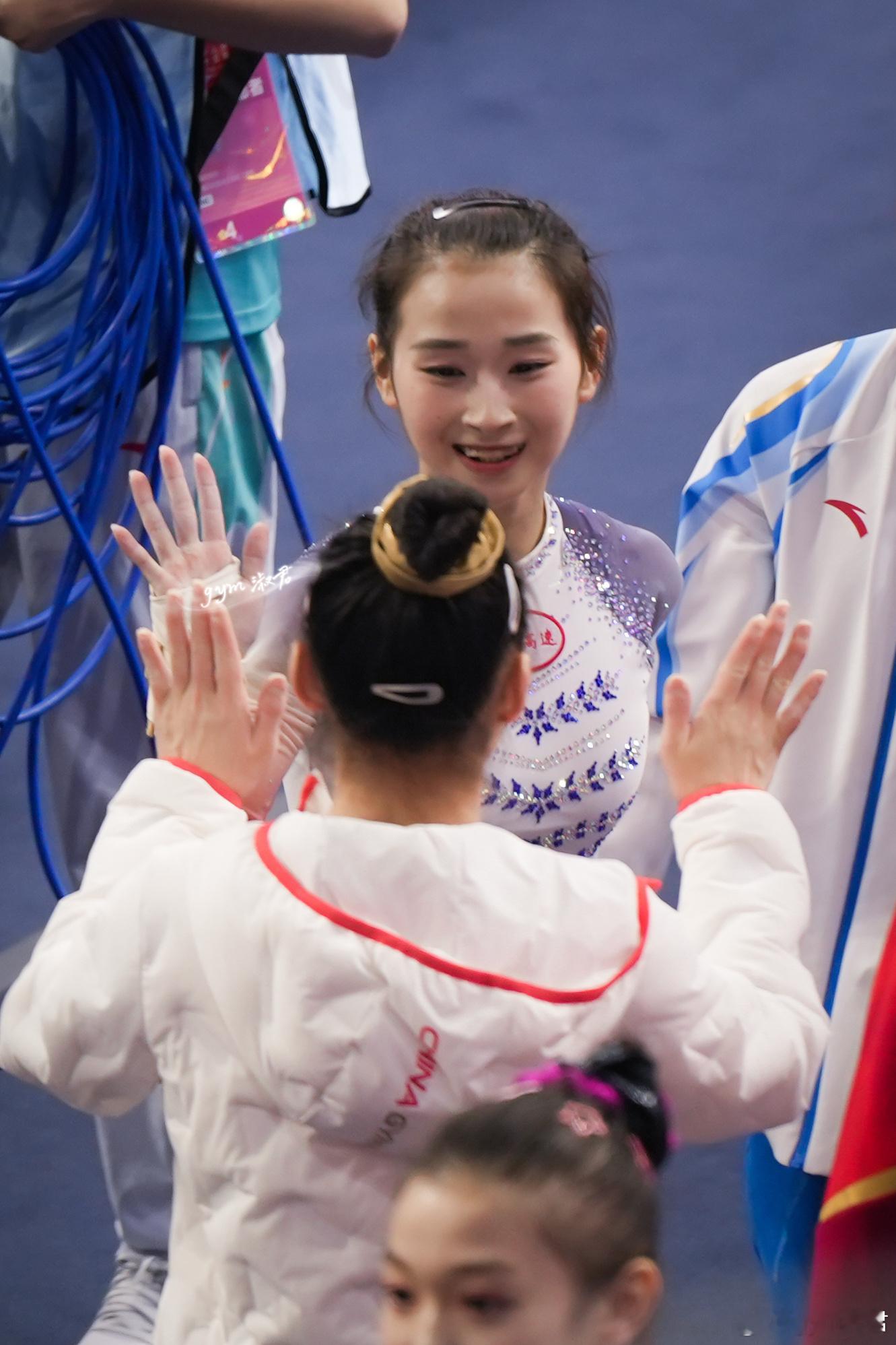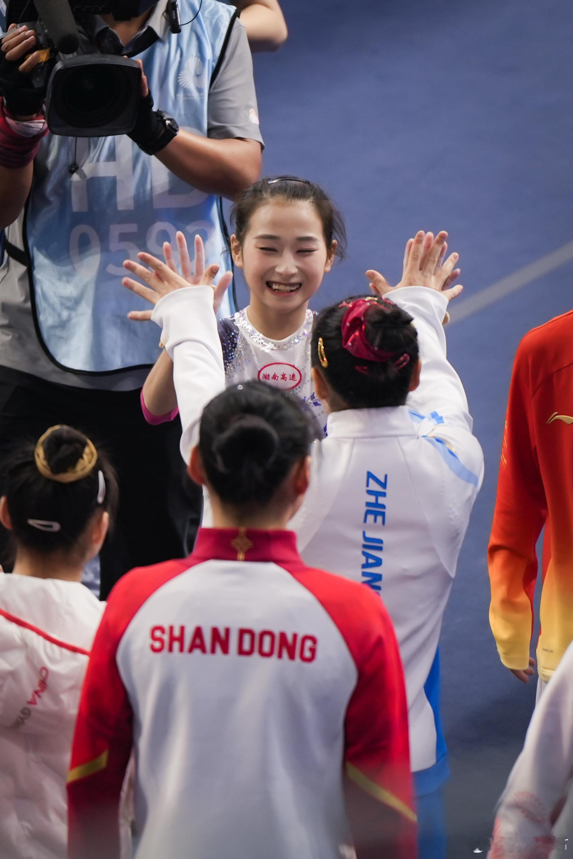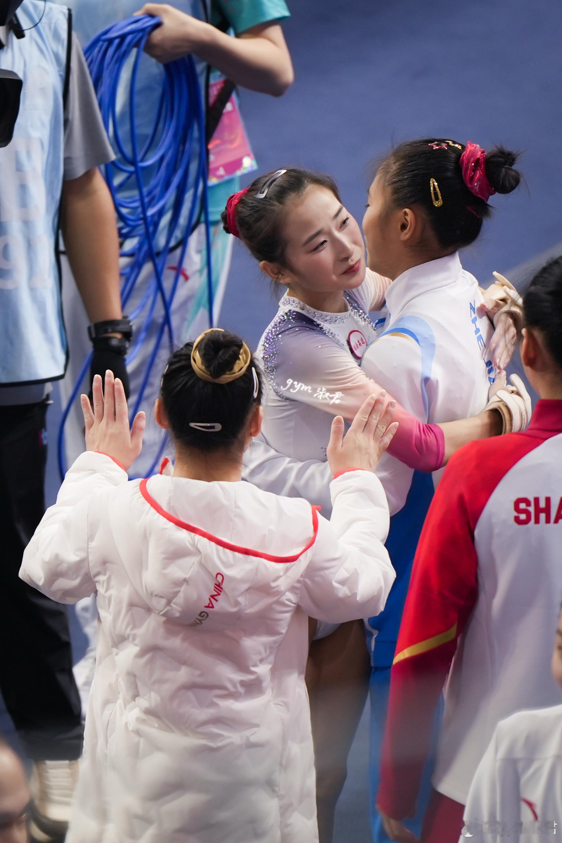 中国体操全运会 女子自由体操决赛,场下的小花们互相鼓励、祝贺、击掌、拥抱,画面真的太美好了赵佳怡柯沁沁张祺田倬凡张清颖张欣怡杨静熙龙子蓉