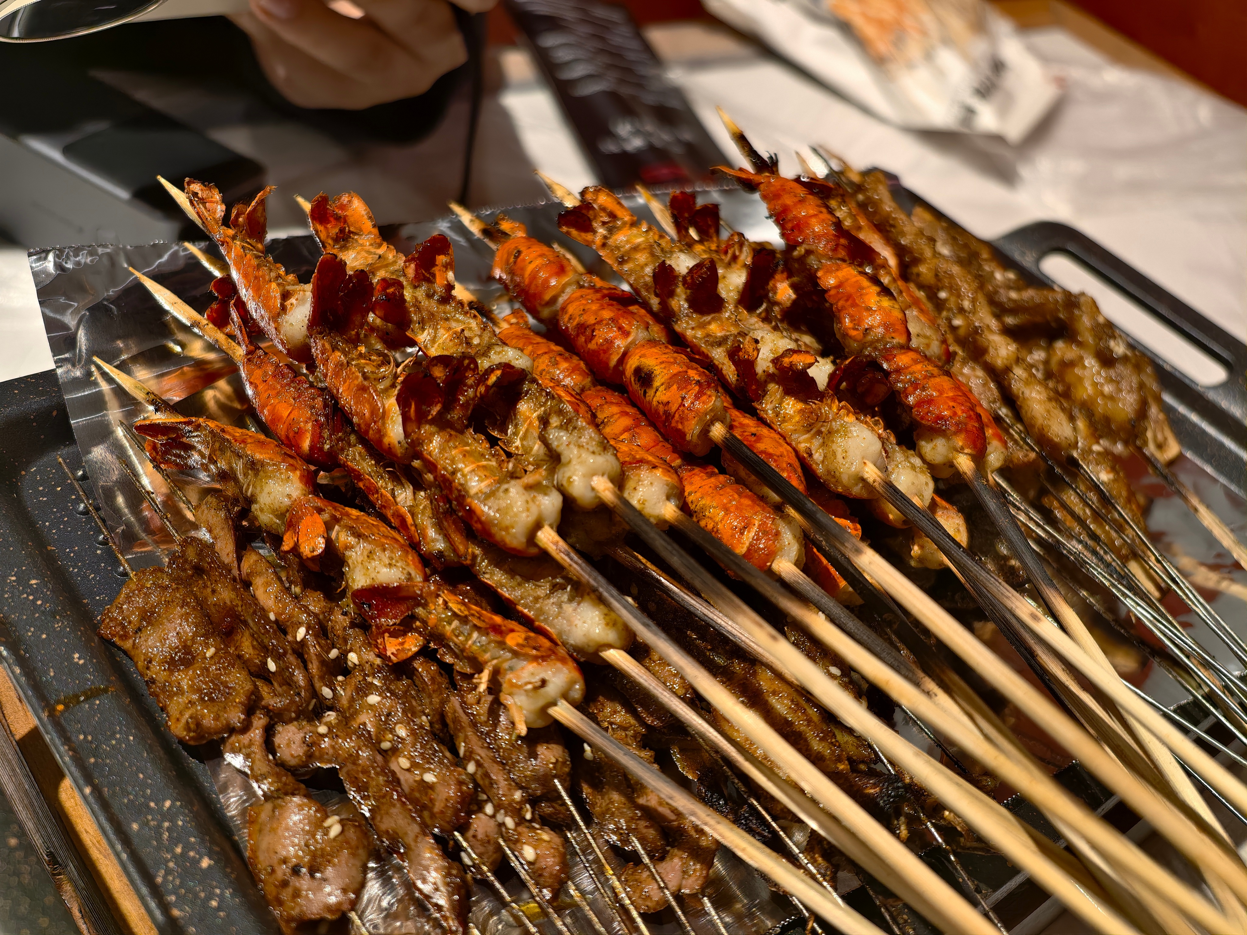 饿了吧,来点烤虾球烤牛蛙烤鳝鱼