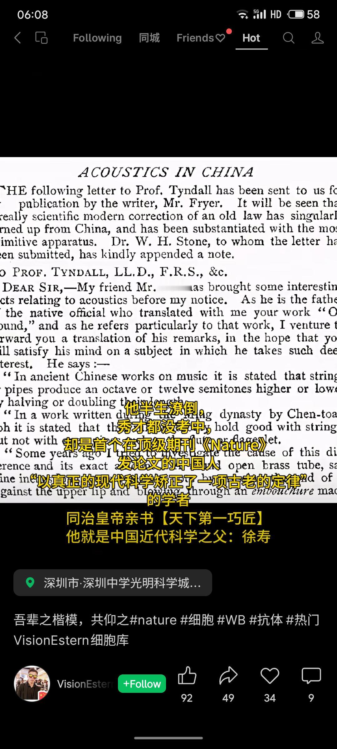 徐寿是中国近代科学先驱,虽科举未中却在1881年成为首位在《Nature》发表论文的中国人。他通过声学实验修正了传统定律,获同治皇帝御赐“天下第一巧匠”,展现了近代中国学者的科研突破。