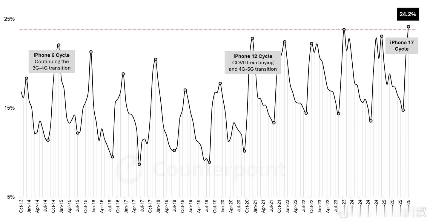 苹果的R技能已施放:iPhone标准版是用来撬动安卓用户,然后该买Pro的还是买Pro. 而且…iPhone 17推出才两个多月苹果10月全球手机份额飙至24.2%