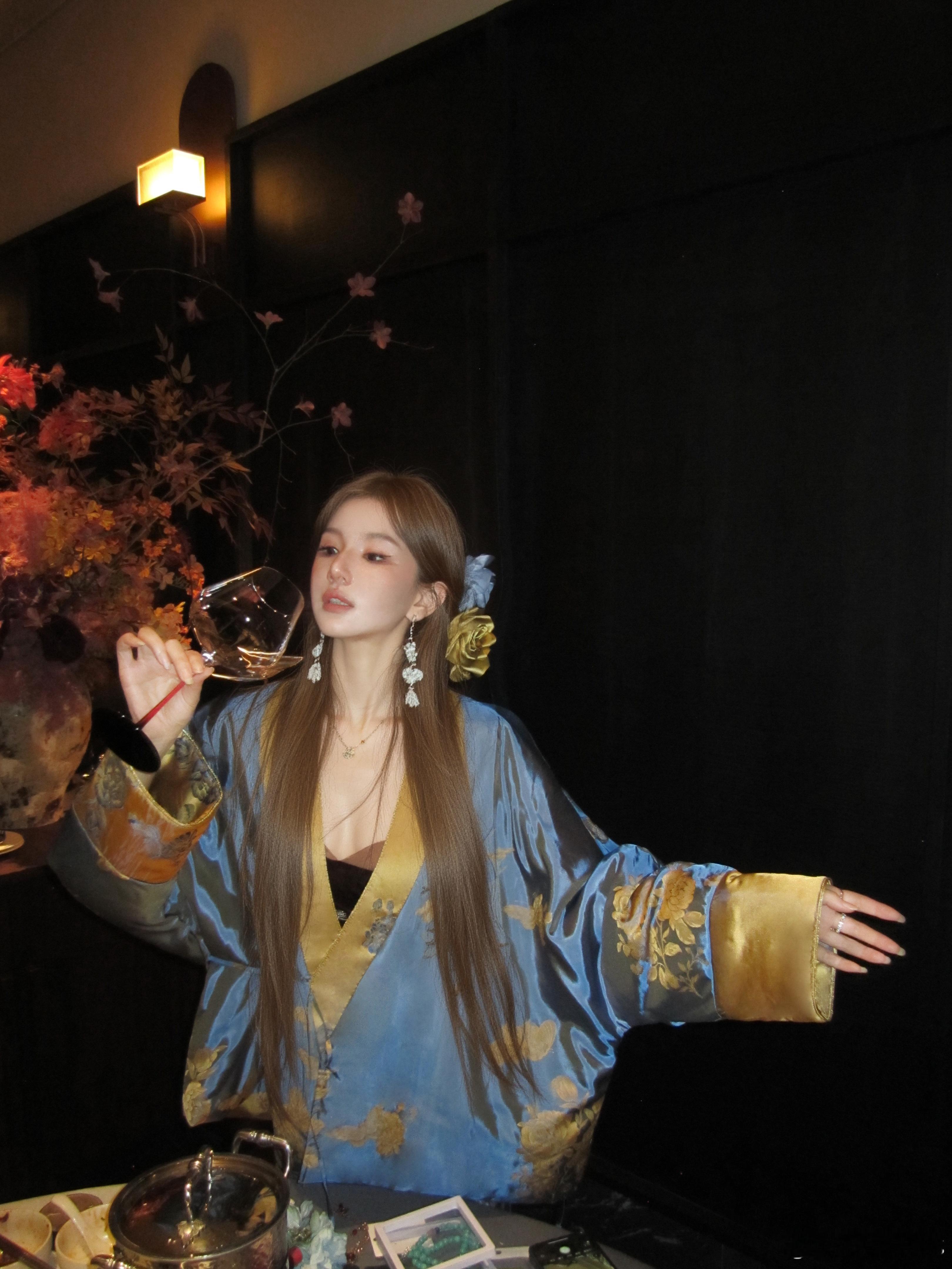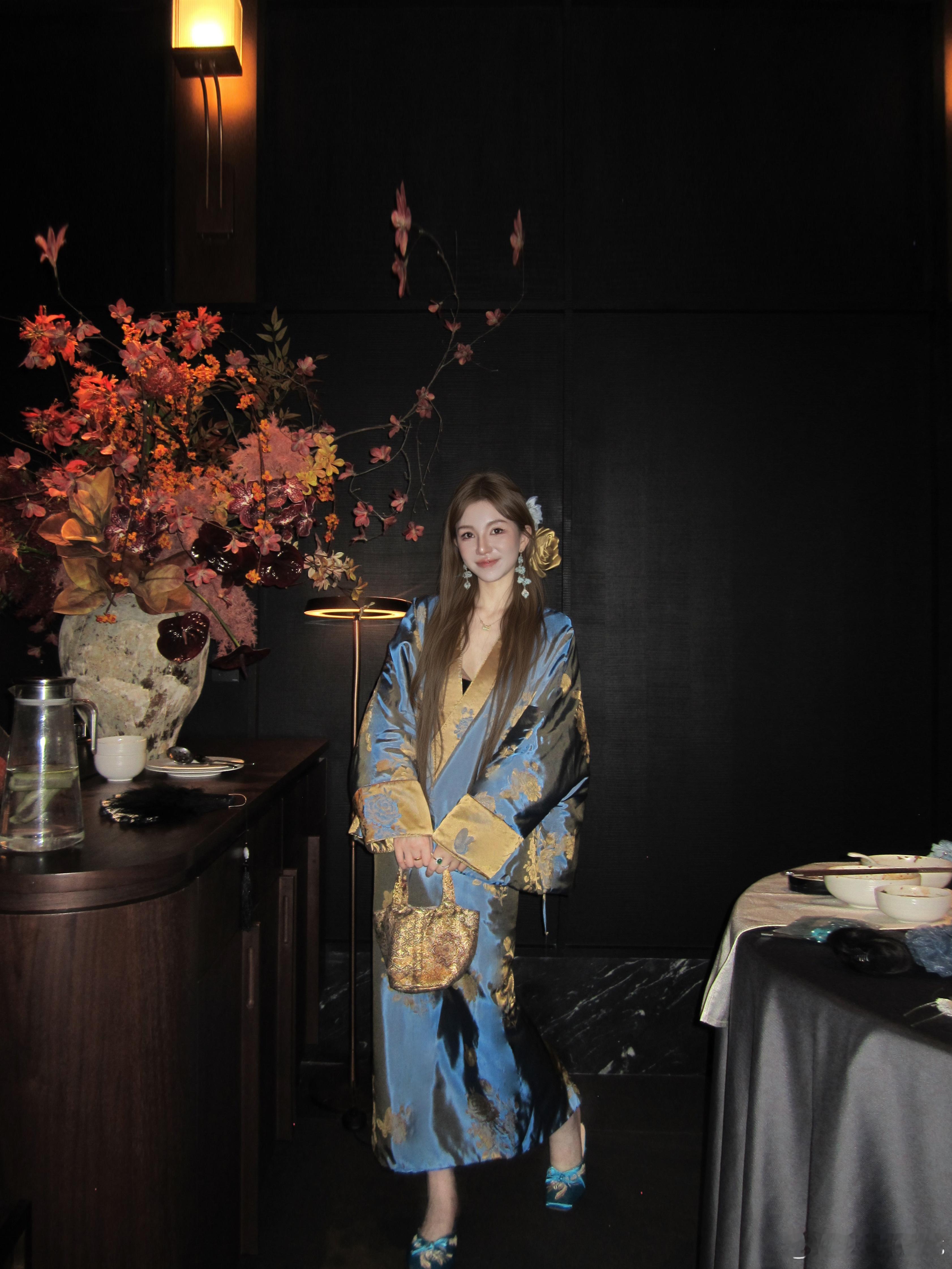 𝑴𝑶𝑺𝑺 𝟏𝟏.𝟑𝟎/𝟐𝟎:𝟎𝟎𝒑𝒎【鎏水生金】🦋⚜️冬季羽绒外套+半裙套装外套衣服采用系带设计,可自由调节松紧,羽绒服的内里,将中式美学的诗意与穿着的实用性完美结合。蝶翅蓝金🦋的新中式仿老缎人丝提花,尽显的典雅与格调。半裙半裙采用了夹桑蚕丝棉☁️设计,在完美展现裙子的中式美学的同时,也使得在现在的天气中抵御寒冷。吊带一字盘扣以金色💛为底、蓝珠点缀,将中式工艺的精湛融入现代吊带设计新中式穿搭质感穿搭