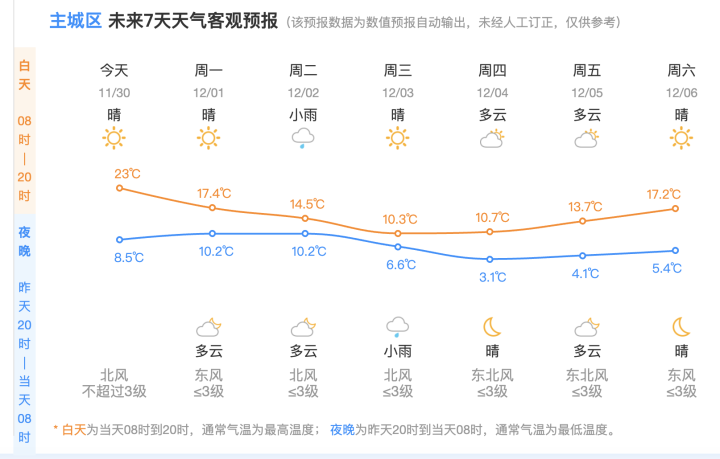 明天,先是有一股东路冷空气南下,由于强度比较弱,同时水汽条件不足,所以云量会略有增多,但不会下雨,气温下降幅度也不大。后天,又会有一股冷空气从西路南下,强度比明天的更强一些,而且在南下时恰好有少许水汽支持,因此杭州气温下降更明显,同时也伴随有小雨出现。只是,未来这次的小雨雨量实在不大,持续时间也短,对于眼下干燥的大气来说无异于杯水车薪,难以扭转连晴天气形势下干燥的局面。