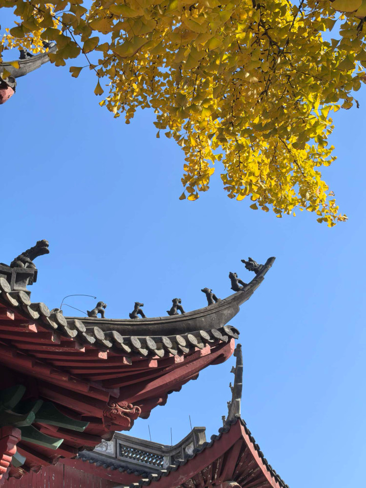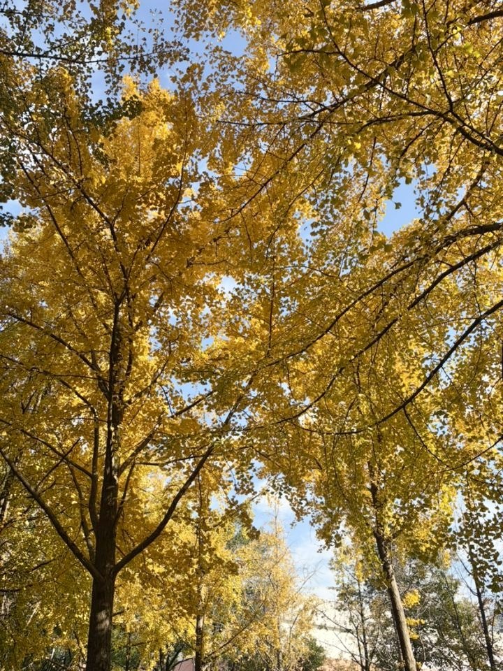 小结一下,天气晴好,阳光充足,加之没有雨水大风光顾,所以今年的银杏看起来格外“金”。