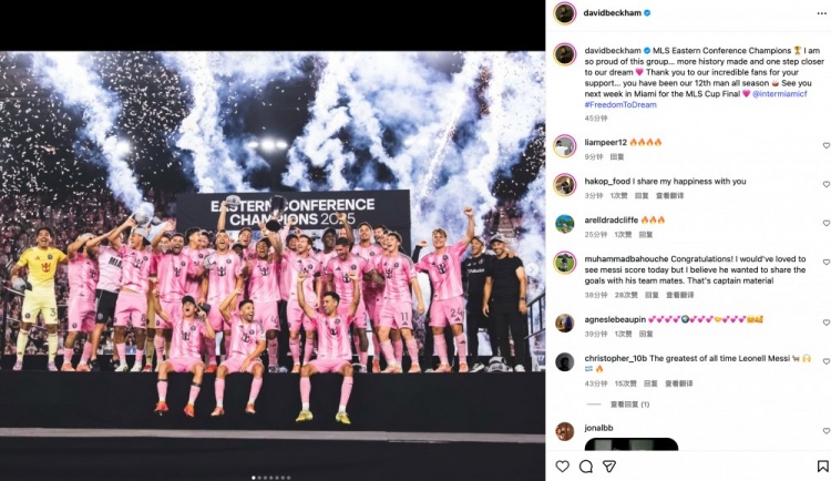 赛后,贝克汉姆更新社交媒体祝贺球队,并写道: