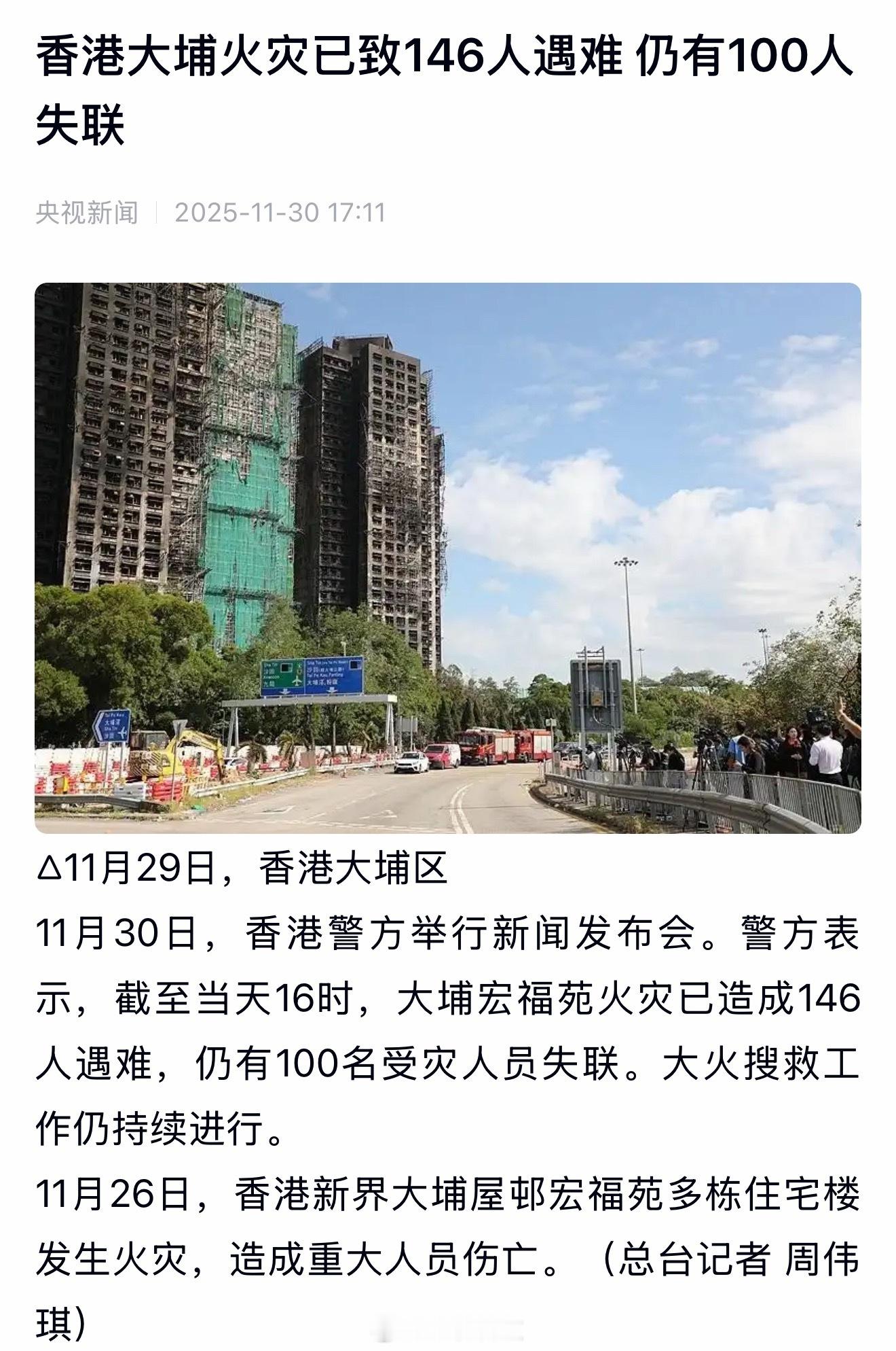 香港火灾已致146人遇难香港火灾已经过去好几天了,官方已经确认死亡146人,还有100人至今失联,这些人消失了?