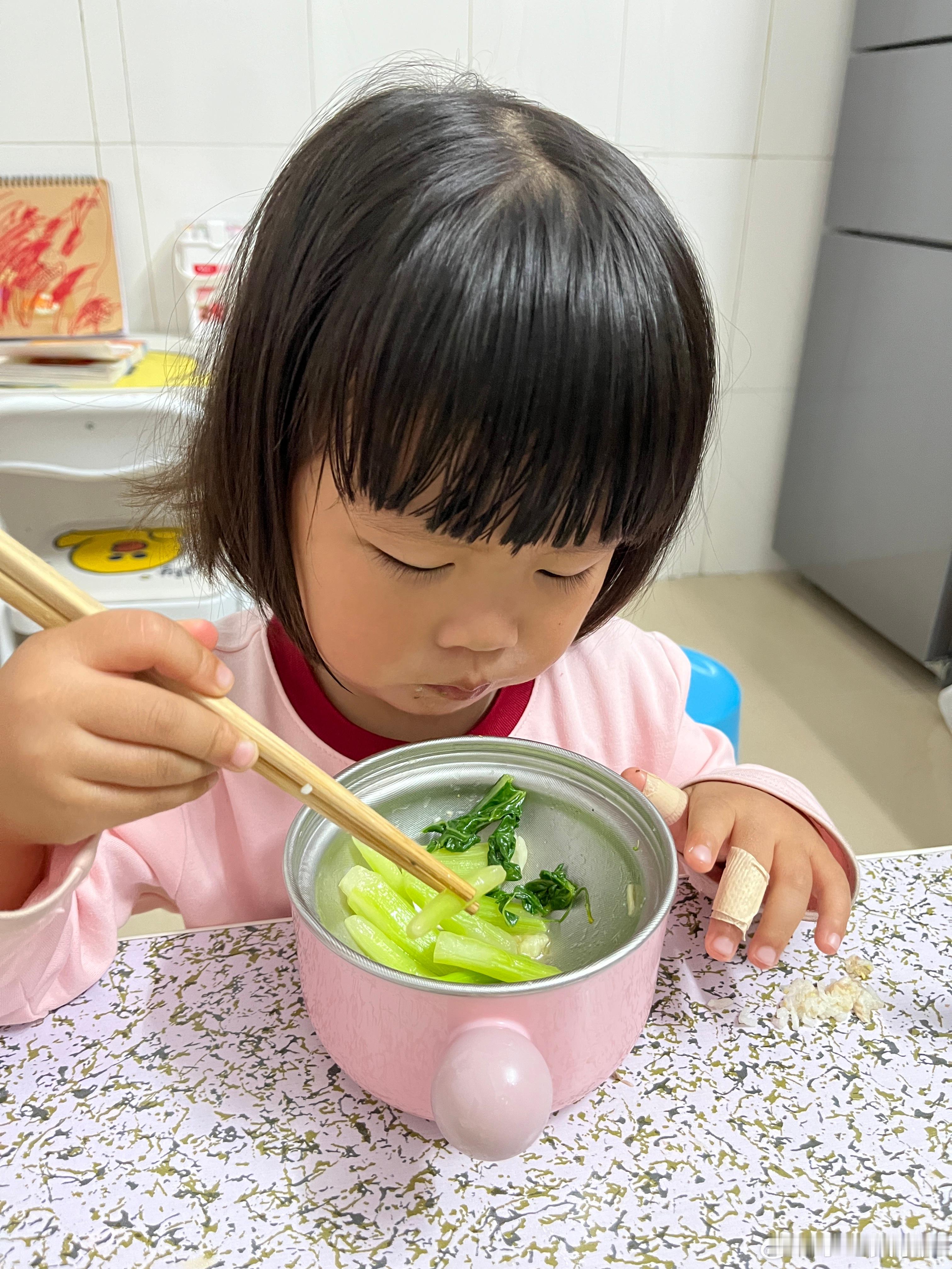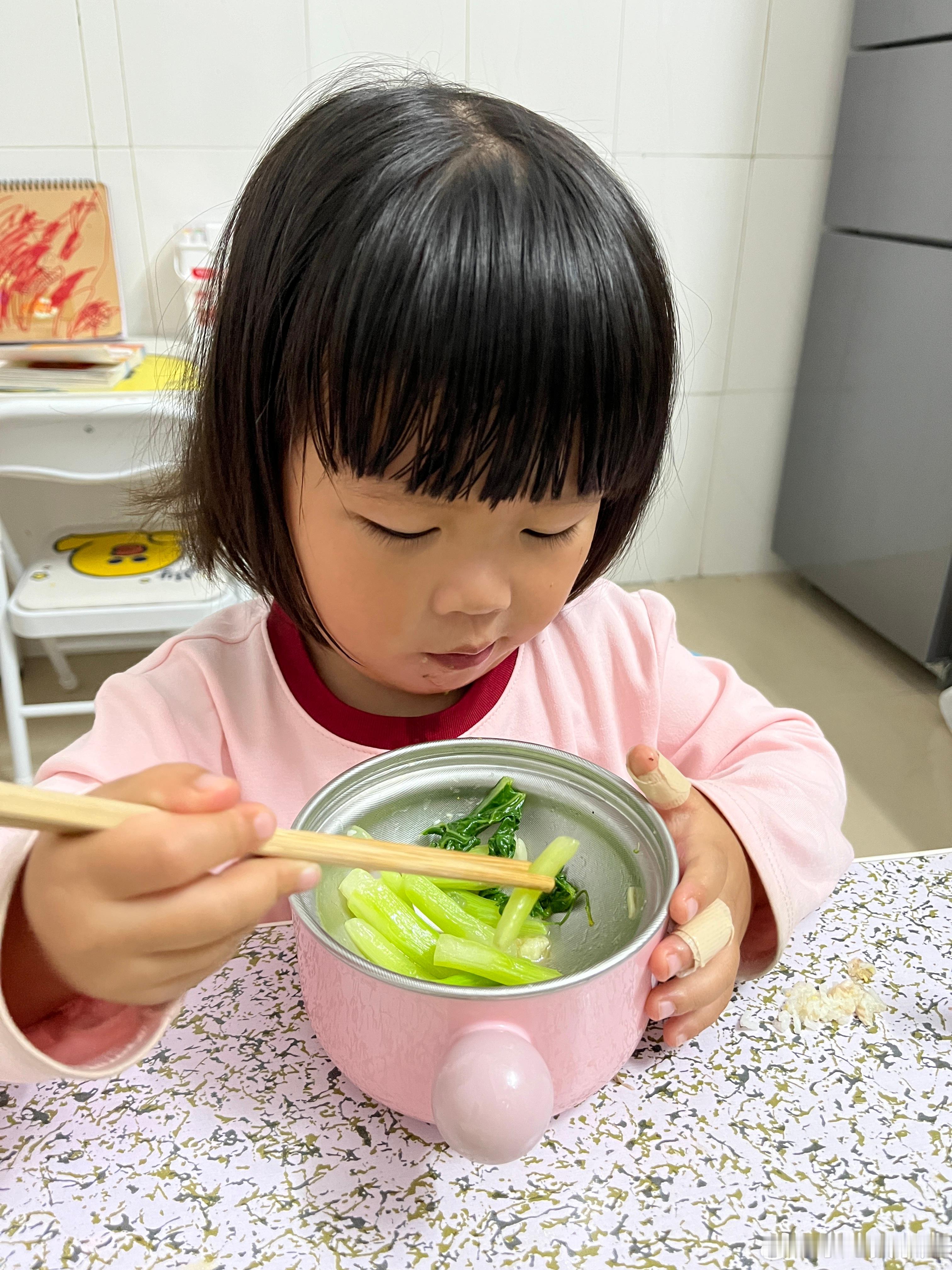 吃饭了,女儿说要吃一个黄骨鱼,说好好吃,那必须安排起来。把鱼肉剔给她吃,吃完鱼,然后吃青菜。我们两个pk 吃青菜,一人一半,急了,叫我先别吃,等等她,她要拿第一名鲁师傅烧饼这个饼是不是很好吃。