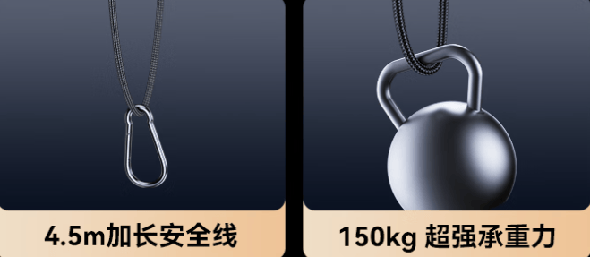绿色设计和安全方面它内建UPS不断电备援系统,断电后播报语音警铃并发送app警告并持续吸附20分钟。附带230kgf安全绳应对各种突发情况,不用担心机器坠落问题。