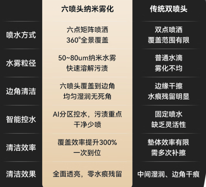 在清洁方面,它还拥有全自动双喷水,更好溶解污渍。配合强锁水,高容尘的抹布持续湿擦,沙尘、雾霾、暴雨等污渍都能擦。