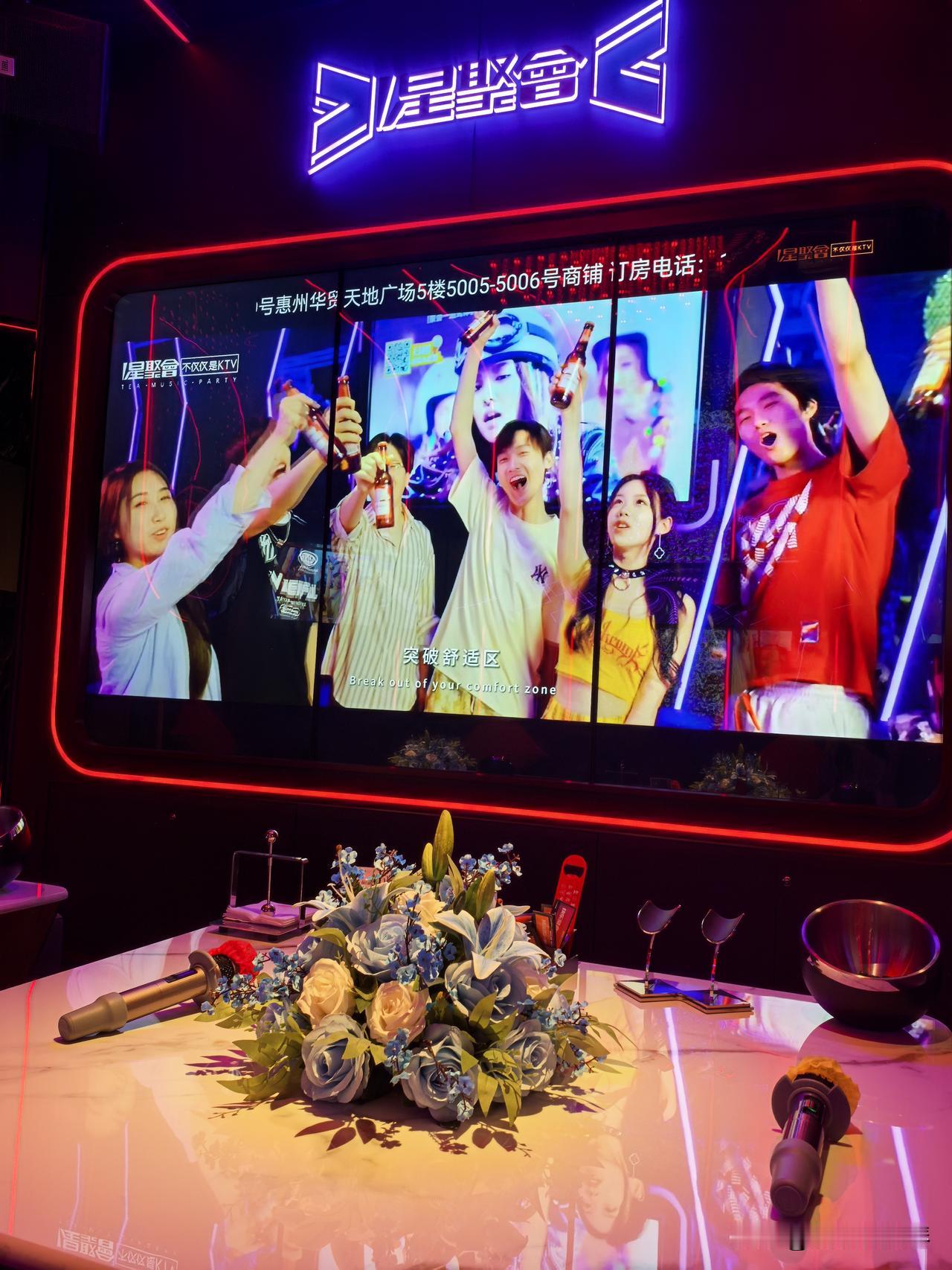 太喜欢这家新开的KTV,音质超级好,而且环境也不错!!即使是我这种唱歌一般的,也变得好听了[大笑][大笑] 🈶十年没唱K了,和朋友周末来放松放松。上次来华茂天地,就看到这家店,没想到这么快开业啦~包间挺多,小包、中包、大包……大包间配有🚾,不用去外面,卫生干净。 店里灯光效果很好,氛围感十足,包间内电视📺大到有点费眼。喜欢唱歌的一定会喜欢这里,可能我太久没来KTV,感觉装修好高级…特别是音质,真的没话说,即使消掉原音,出来的效果竟然还不错[赞][赞]开心~ [烟花]实用信息: 地址: 惠州江北华茂天地五楼 貌似是预约制,最好提前电话☎预约,特别是周末 网上买套餐便宜,最近活动力度蛮大的,嗨唱三小时足够 唱完直接在华茂吃饭,娱乐吃饭一条龙,哈哈!!