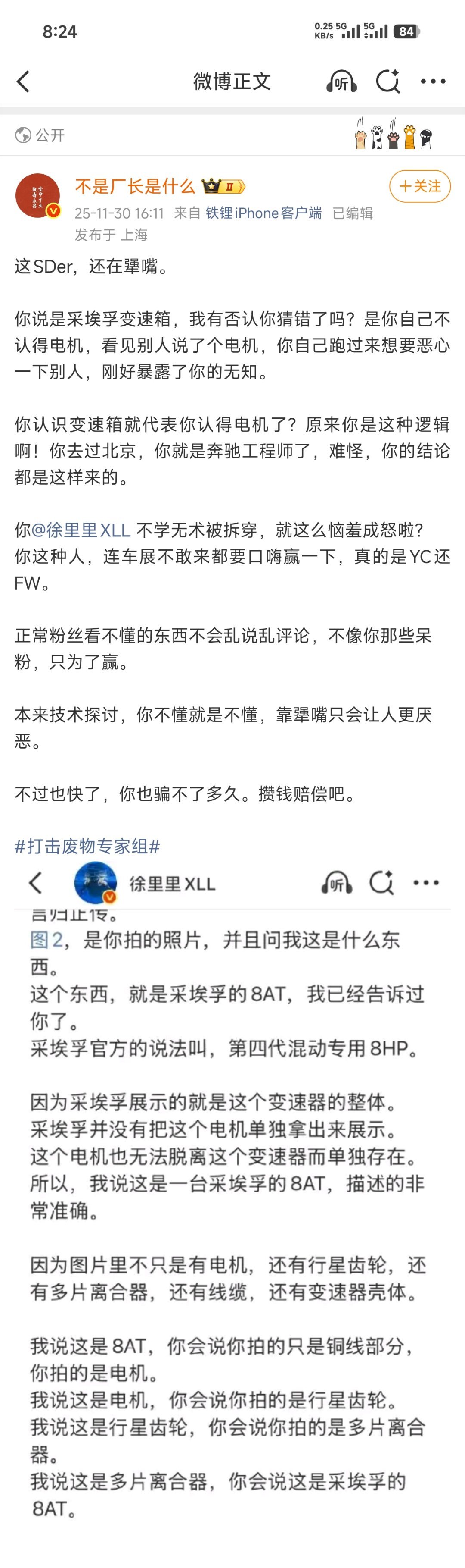 看看人家这边吵架,再看看米粉和米黑,真的是一言难尽又有点羡慕。真的不想再反复科普什么叫丢轮保命,为什么ultra用铝合金摆臂su7用钢这么基础常识的内容了哦对了,同一个人,对付比亚迪的时候会聊低压油箱,会聊磷酸铁锂和三元锂优劣。但是对付小米的时候,碳纤维原材料多少钱一吨这也可以算是两年金主的不同需求把