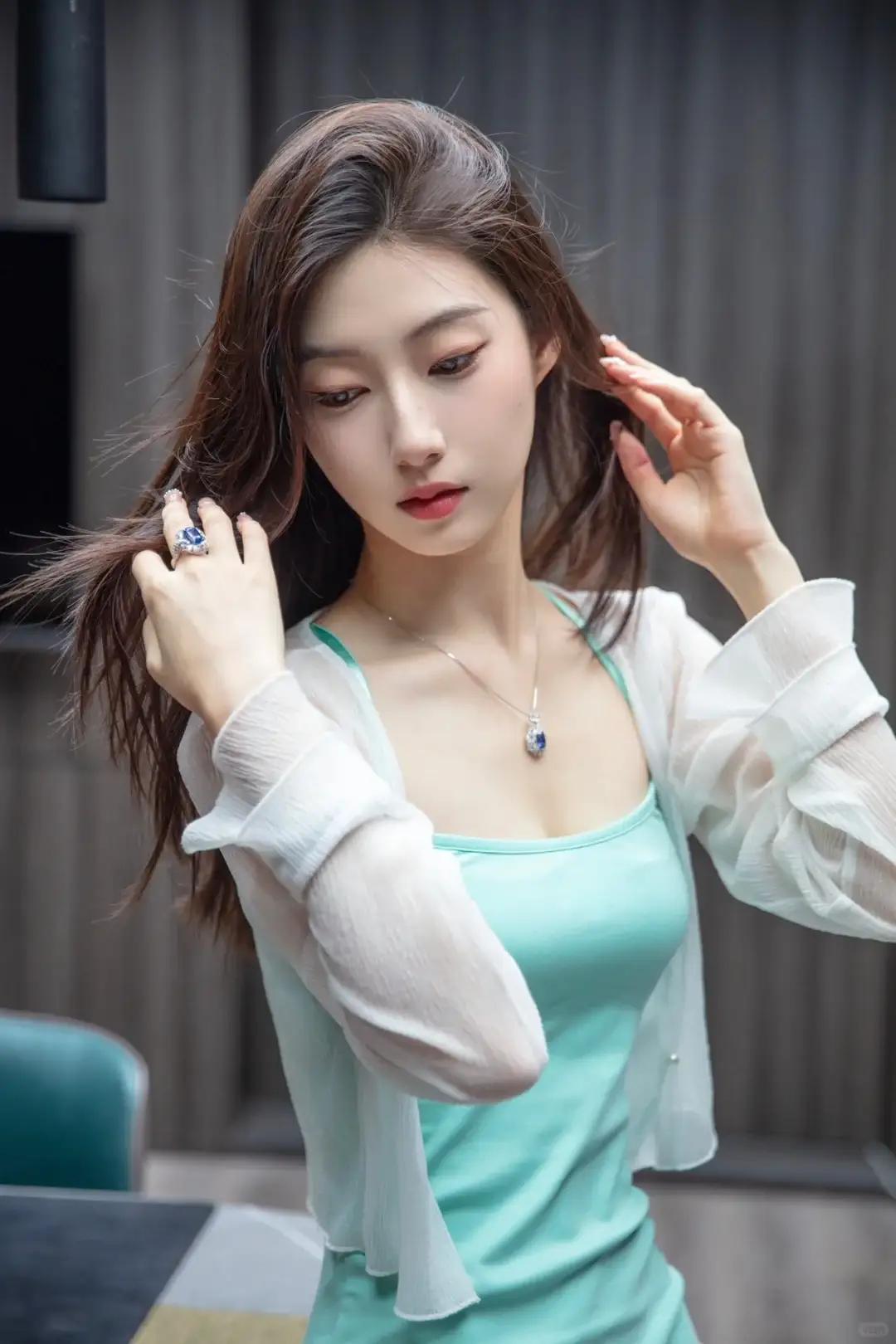 镁光灯在玻璃展柜间折射出细碎光斑,将整个空间切割成无数个菱形梦境。她站在光晕中心,浅绿吊带裙的缎面泛着柔润光泽,像清晨沾露的玉兰花瓣。薄纱外套垂落时掠过锁骨,惊动了颈间那枚祖母绿吊坠,宝石内部流淌的翠色涟漪,恰似她眼底荡漾的温柔笑意。 "这是上世纪三十年代的古董珠宝。"她抬起右手,指尖的翡翠戒指在聚光灯下苏醒。戒面切割出十二个棱面,每个切面都封存着往昔岁月——1932年上海和平饭店的圣诞舞会,1948年远渡重洋的檀木首饰盒,1985年重逢时老先生颤抖着打开的蓝丝绒布袋。此刻宝石在她指间流转,倒映着展柜里那些沉睡的胸针与怀表,整个空间忽然弥漫起老式留声机流淌的爵士旋律。 玻璃展台突然泛起雾气,她看见镜中浮现出另一个身影。穿墨绿旗袍的女子正对镜整理珍珠耳坠,梳妆台上摆着同款翡翠戒指。1943年的雨夜,外滩海关大楼钟声穿透租界屋檐,她将戒指塞进即将登船的青年手中。"要像守护眼睛那样守着它。"此刻两个时空的指尖在镜面交叠,翡翠的凉意渗入血脉,唤醒沉睡八十年的诺言。 当参观者的脚步声惊醒展厅,她转身时薄纱拂过展柜。某块玻璃突然映出老相馆的布景:穿西装的青年正在为旗袍女子调整戒指角度,相机镁光灯炸开的瞬间,两颗翡翠在时空中完成隐秘的共振。此刻她抚过颈间吊坠,宝石内部忽然闪过当年暗房显影液里的银盐颗粒,那些未及言说的爱语,正随着展厅灯光渐暗,沉淀成翡翠最深处的一缕金丝绒絮状物。 窗外暮色漫入展厅时,她最后看了眼中央展柜。那枚见证过乱世离愁的戒指躺在蓝丝绒上,戒圈内"1932.12.24"的刻痕正在吸收最后一线天光。当保安按下电闸,整个展厅陷入黑暗的刹那,所有珠宝突然发出幽微荧光,像沉睡在时光深处的星辰,永远守护着那些未能说出口的永恒瞬间。