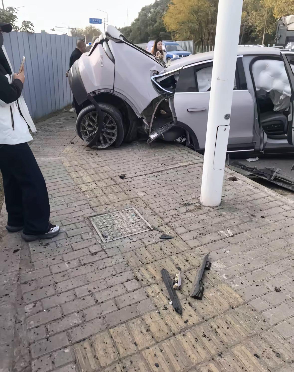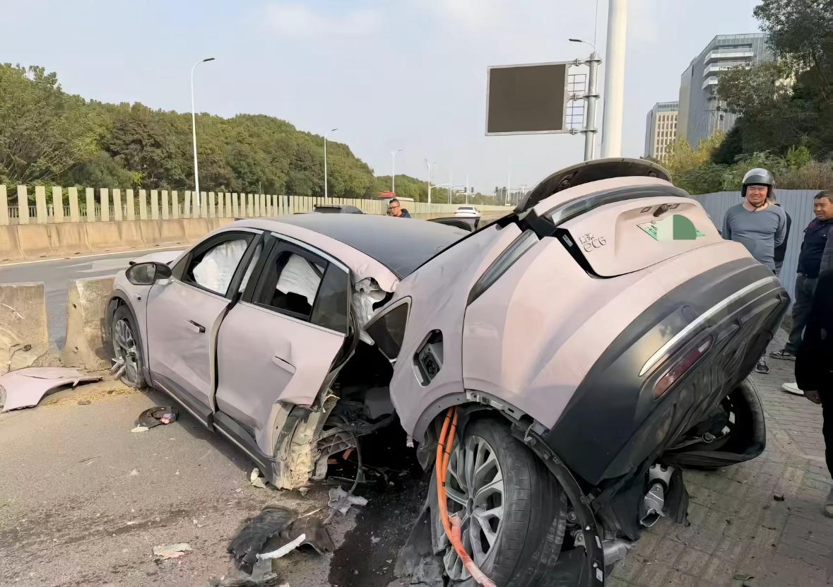 刚刚发生的大新闻,蔚来es6车祸断成两截了。不过大家别紧张,电池没有熄火气囊正常弹出门也全部可以打开,驾驶员看上去也挺好。 从最后一张图可以看出应该是撞了那个水泥墩子,我看评论区好像是从高架上面掉下来掉在这个墩子上,所以断了,不过这种情况下,车门都正常打开也没有起火,蔚来还是牛的【来自懂车帝车友圈】