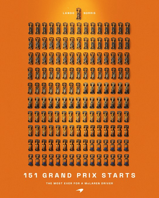 虎扑12月01日讯在F1卡塔尔大奖赛结束后,兰多-诺里斯以151场大奖赛参赛次数书写迈凯伦车队历史篇章,成为参赛场次最多的车手纪录。