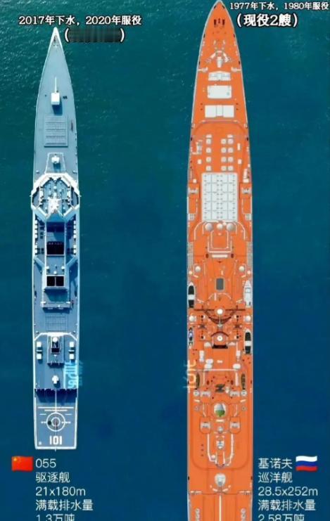 直到看到055和基洛夫并排的对比图,我才惊觉军舰设计已经隔了一个时代。 055型驱逐舰和基洛夫级巡洋舰并排停靠的照片在军迷圈流传开时,没人能绕开那种直观的反差感。 基洛夫看着就像块堆得满满当当的钢铁疙瘩,上层建筑挤着各种天线和武器,显得杂乱又笨重;055就不一样,舰身线条顺溜,上层也简洁,连桅杆都做成了一体化的,看着就利落。 这种反差不止是外形上的,往深了说,是两种完全不同时代的海军设计思路在面对面较劲。 基洛夫是冷战那阵子的产物,当时苏联跟西方海军对着干,雷达和导弹精度都不行,想突破防线就得靠猛劲。 那时候的思路就是把能装的导弹都装上,靠一轮齐射砸懵对手,管你准不准,数量堆上去总有能中的。 这种思路搁当时确实有道理,毕竟那时候战场信息不透明,谁先把火力倾泻出去谁就占优。 但现在战场变了,信息传递快得很,雷达探测范围也远,你导弹再多,要是没先发现敌人,没锁定目标,打出去也是白搭。 055就抓准了这点,不拼数量拼效率,先把探测和锁定能力提上去,再用精准的火力打击,这比盲目堆导弹管用多了。 这种理念上的差别,直接体现在舰上的每一处技术细节里。先看隐身能力,基洛夫那体型和杂乱的布局,在现代探测设备面前跟亮着灯的靶子没区别,不用费劲就能被发现。 055不光线条藏得住,还涂了隐身涂层,连雷达反射面积都小了很多,远看可能都辨不出是艘大舰。 电子系统差距更大,基洛夫上的雷达、通信这些设备都是各管各的,信息凑到一起还得人工整理,反应慢不说,能辨别的目标数量也少得可怜,连续工作几小时还得关机冷却,根本跟不上现代战场的节奏。 055把这些功能都整合到一个平台上,信息一来就能自动处理,能同时盯着好几十个目标,反应速度根本不是一个量级的。 武器系统也是同理,基洛夫的导弹发射装置好多都是专用的,装反舰的就不能装防空的,换弹种得费老大劲。 055的垂发是通用的,不管是防空、反舰还是反潜导弹,都能塞进去,想用哪种换哪种,灵活多了。 有人觉得基洛夫导弹多就是厉害,其实不然,现代海战拼的不是谁带的弹多,是谁能先出手、打得准。 055的通用垂发看着数量没基洛夫多,但能用的弹种全,还能快速切换,实战里比堆数量管用多了。 自动化程度的差距更明显,基洛夫得靠好几百人操作,好多活儿都得人工来;055三百来人就够了,不少操作都靠系统自动完成,人少不代表战斗力弱,反而因为不用手动操作,反应还更快。 这些技术和理念的差距,背后其实是两国海军战略的彻底转变。 苏联当时的海军,主要任务是在自家门口附近防御,偶尔突破北约的防线,所以得靠基洛夫这种大家伙单打独斗,觉得一艘舰火力够强就能冲破防线。 现在的海军不一样了,讲究的是远洋作战和体系配合,055不只是一艘舰,还能跟航母、潜艇、战机连起来,信息共享,一起作战。 单舰再猛,也架不住对方一群装备联合作战,这就是体系的力量。 基洛夫那种单舰为王的思路,早就跟不上现在的战场节奏了,就算后来俄罗斯给基洛夫做了改装,换了些新设备,但骨子里的设计框架没变,还是那个冷战时期的底子,改得再花哨也没法跟055这种全新设计的舰比。 055和基洛夫的同框,与其说是两艘舰的对比,不如说是两个时代的对话。 基洛夫代表的是冷战时期那种靠火力堆砌的粗放式设计,看重的是单舰的威慑力;055代表的是信息化时代的精准化设计,看重的是体系里的协同效率。 前者是旧时代的巨兽,靠着吨位和数量撑场面;后者是新时代的尖兵,靠着技术和体系占优势。 很多人聊军舰总爱比吨位、比导弹数量,却忽略了设计理念才是核心。 吨位再大,理念落后了,在战场上也只能被动挨打,军舰的设计从来不是单纯的钢铁堆砌,而是一个时代军事思想和技术水平的缩影,旧时代的巨兽再威猛,也挡不住新时代的浪潮。