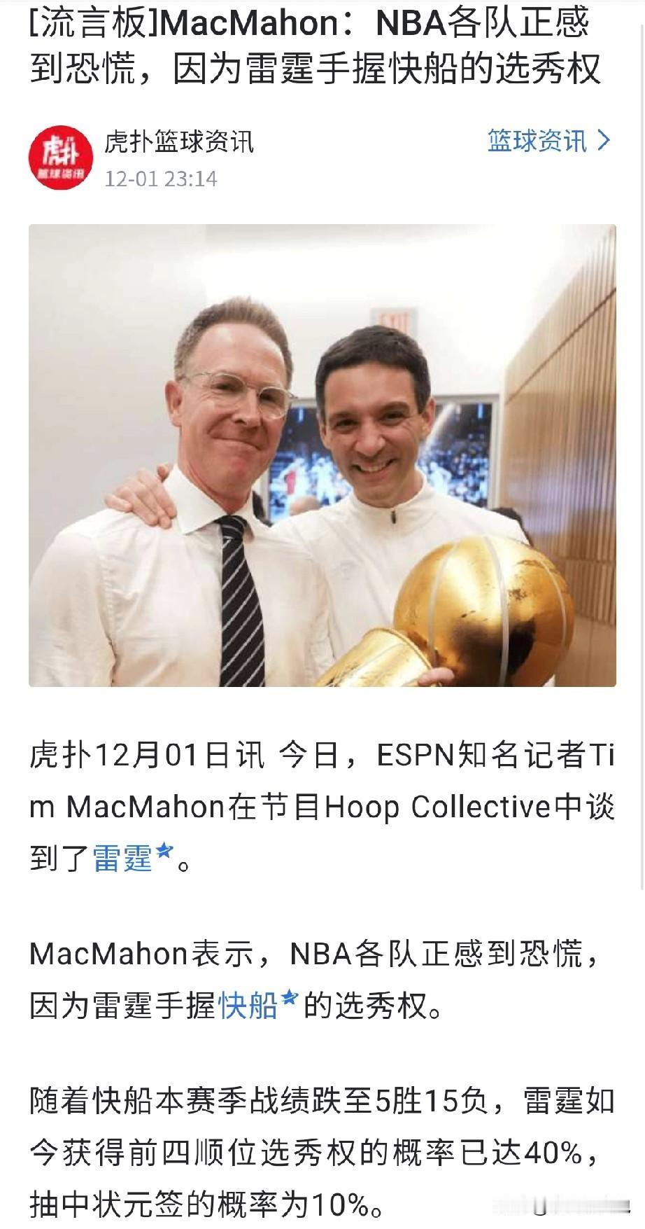 一边争冠军,一边争状元,雷霆想不王朝都很难。 现在全联盟都希望快船赢球,不为别的,就以雷霆这个选秀水平,你就算给他一个探花签,其他球队也受不了啊,更何况明年还是个选秀大年。 难道真的要出现卫冕冠军手握状元签,这个史无前例的奇观?