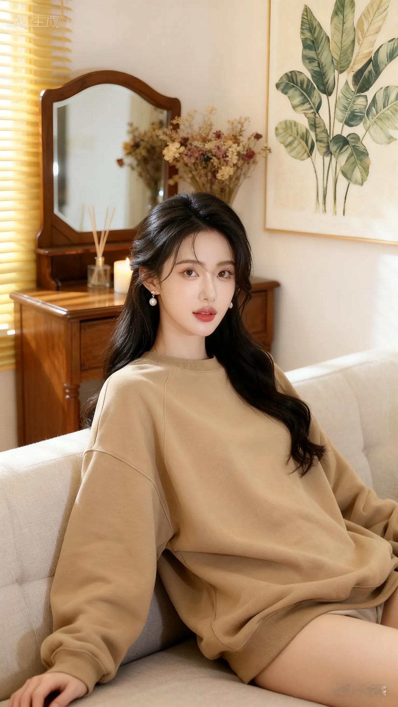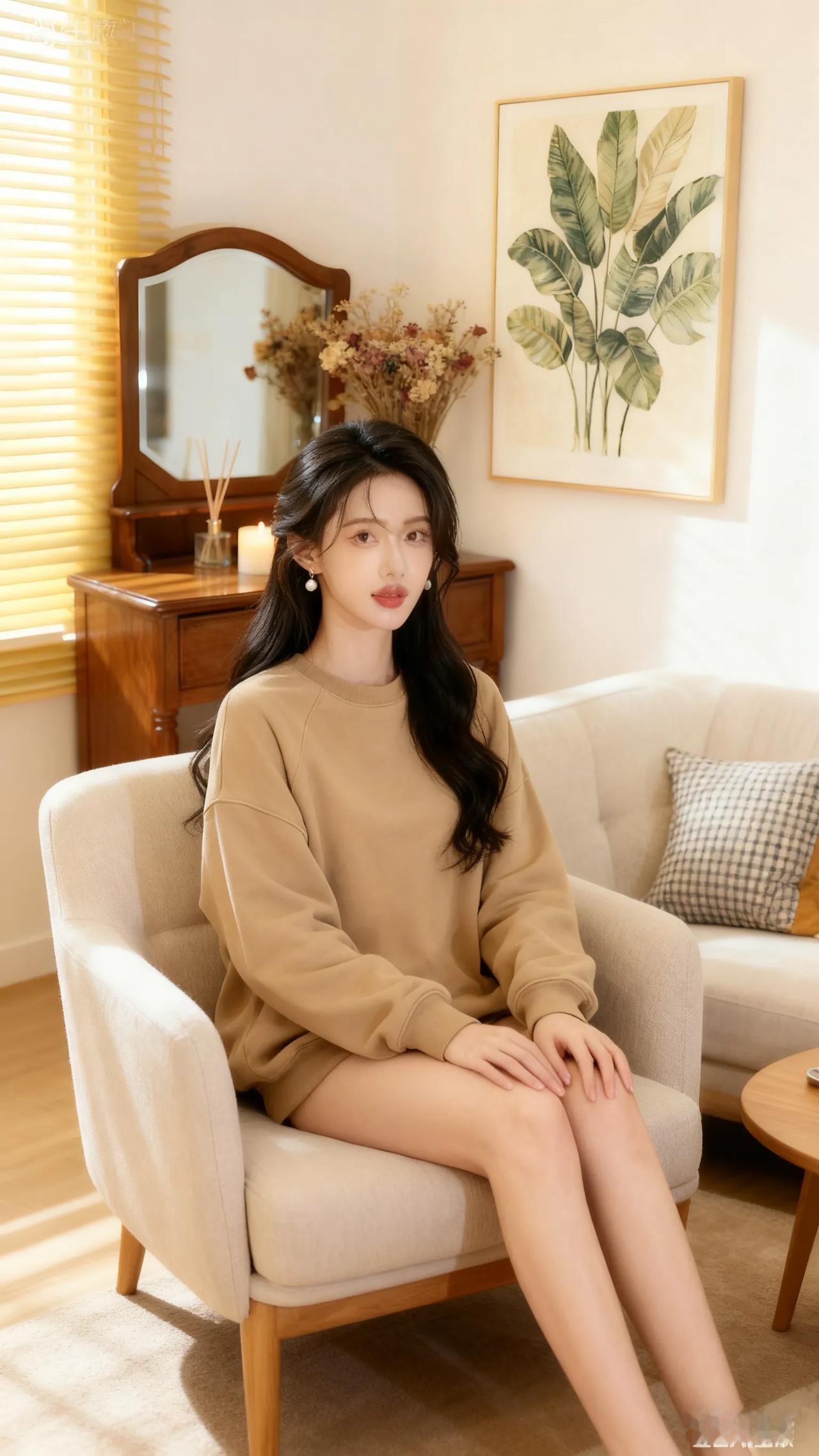 慵懒午后,温暖阳光洒进房间,少女在沙发上享受宁静时光。