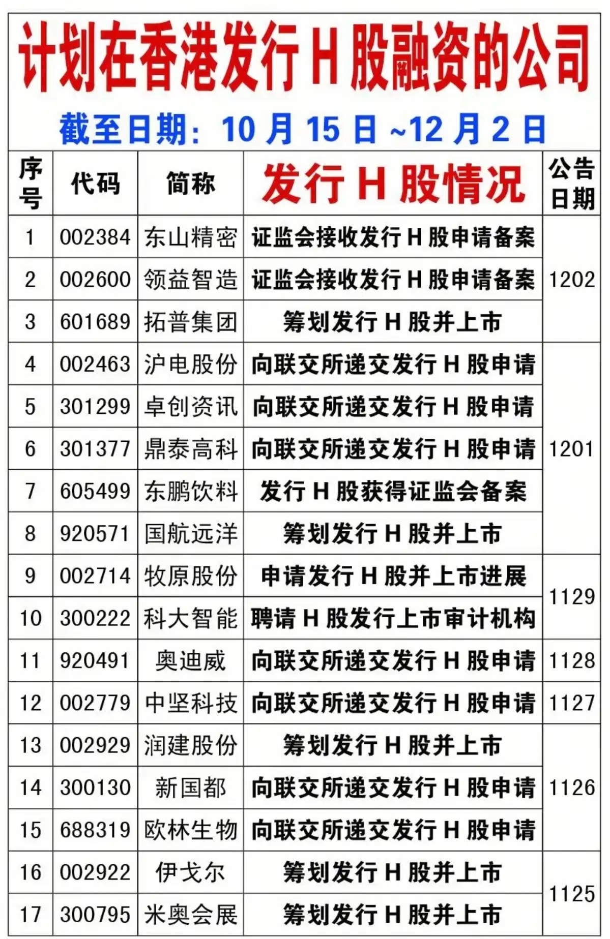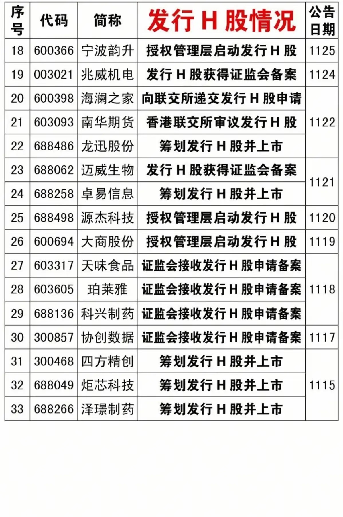 近期计划在香港发行H股:融资的公司!近期有33家公司,筹划发行H股,并在香港上市!