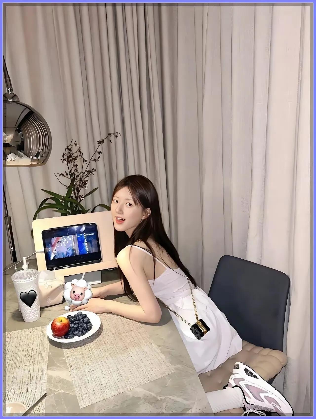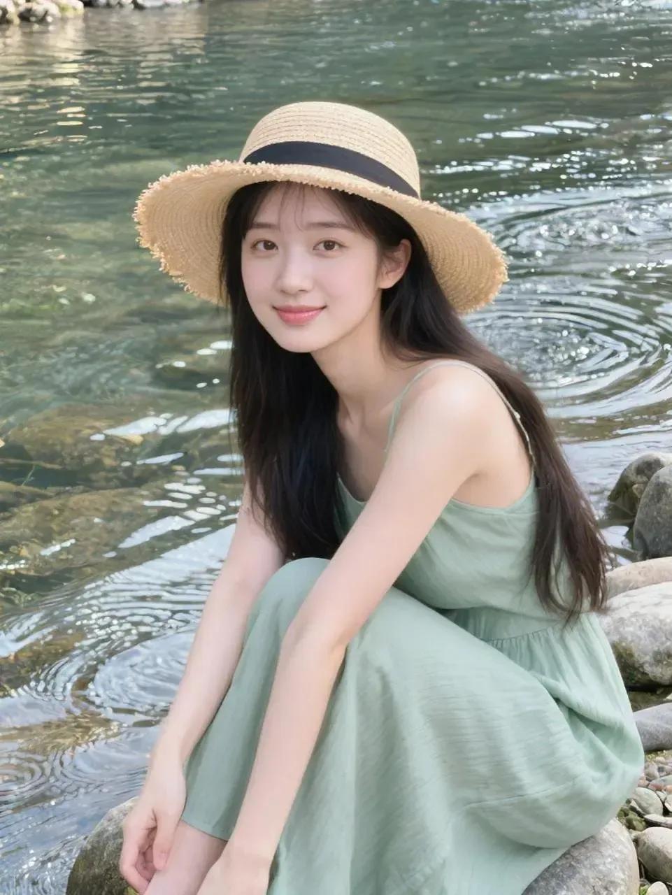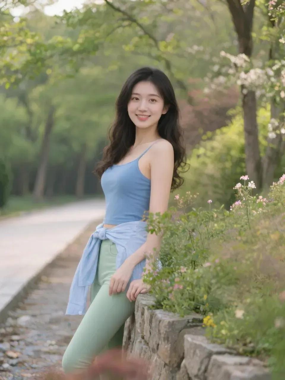 绿植掩映间,美人笑语生。