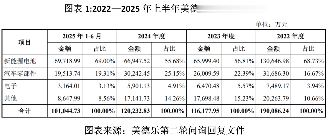 需注意的是,报告期(2022—2025年上半年)内,美德乐的营收整体呈增长趋势,但是却未伴随着订单放量,还与同行可比公司的营收变动趋势及大客户的业绩增长趋势背离。
