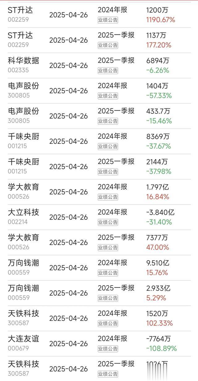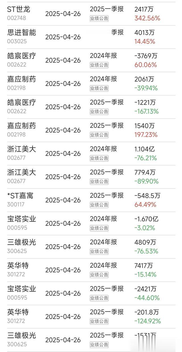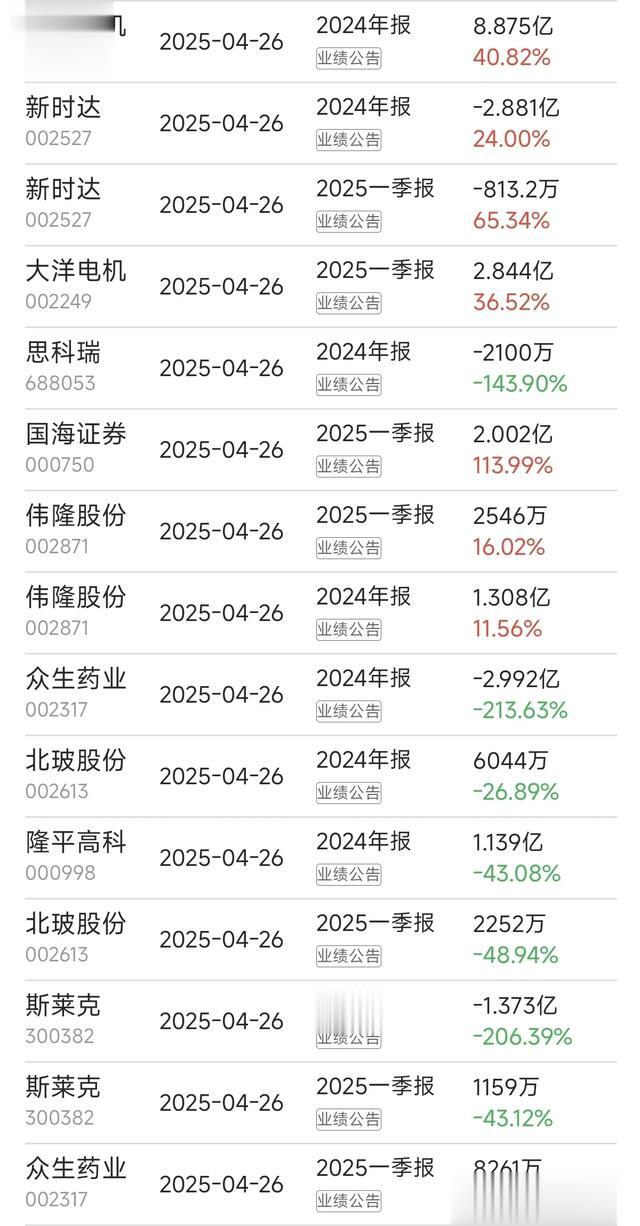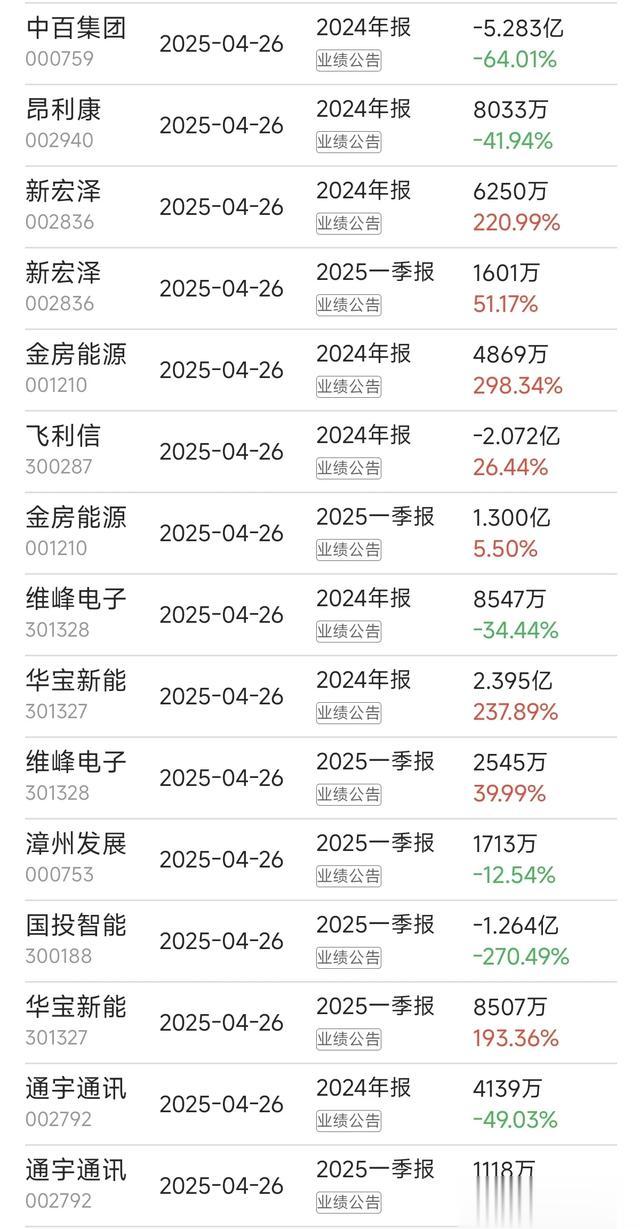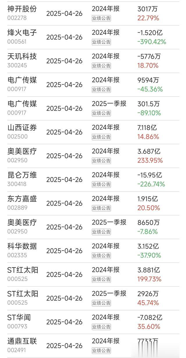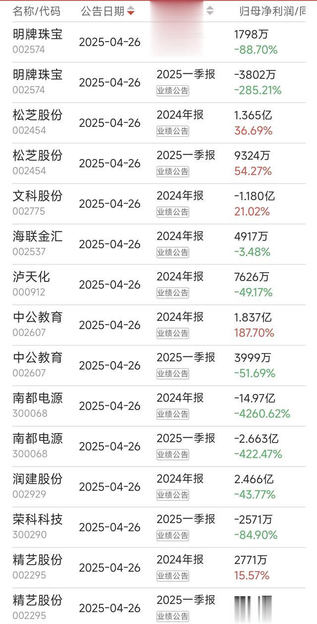 根据2024年年报数据,公司净利润亏损4144万,昨晚又有很多家公司披露业绩,有的净利润亏损或者同比下降(部分名单附后),成了股民噩梦。