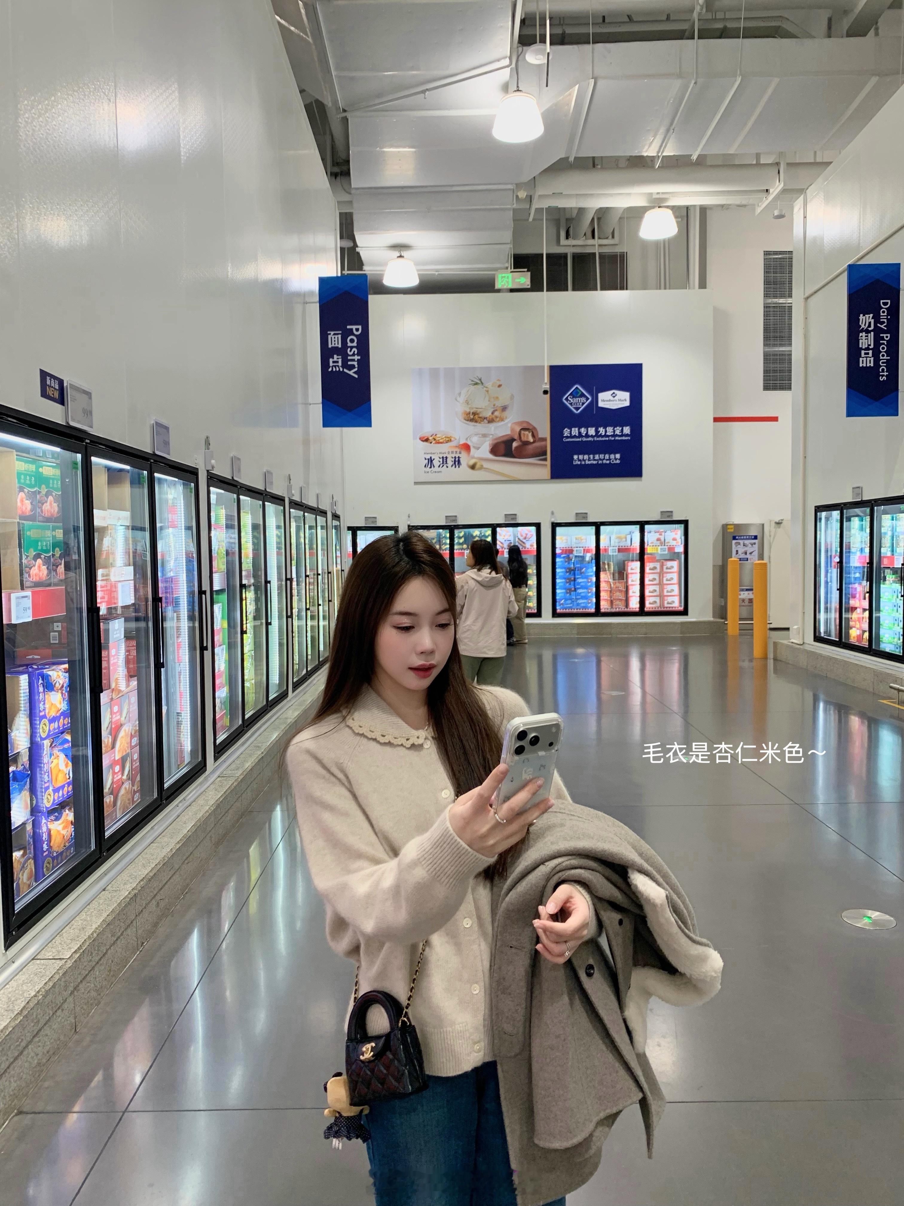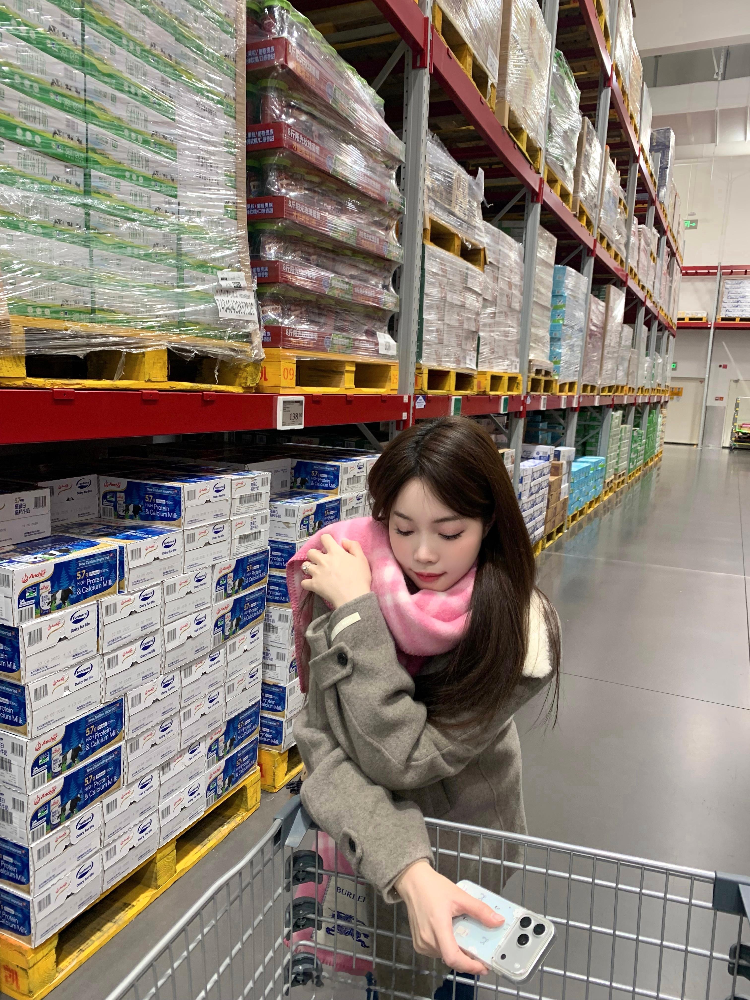 漂亮逛超市咯~闺蜜 大衣的搭配裤子也好看