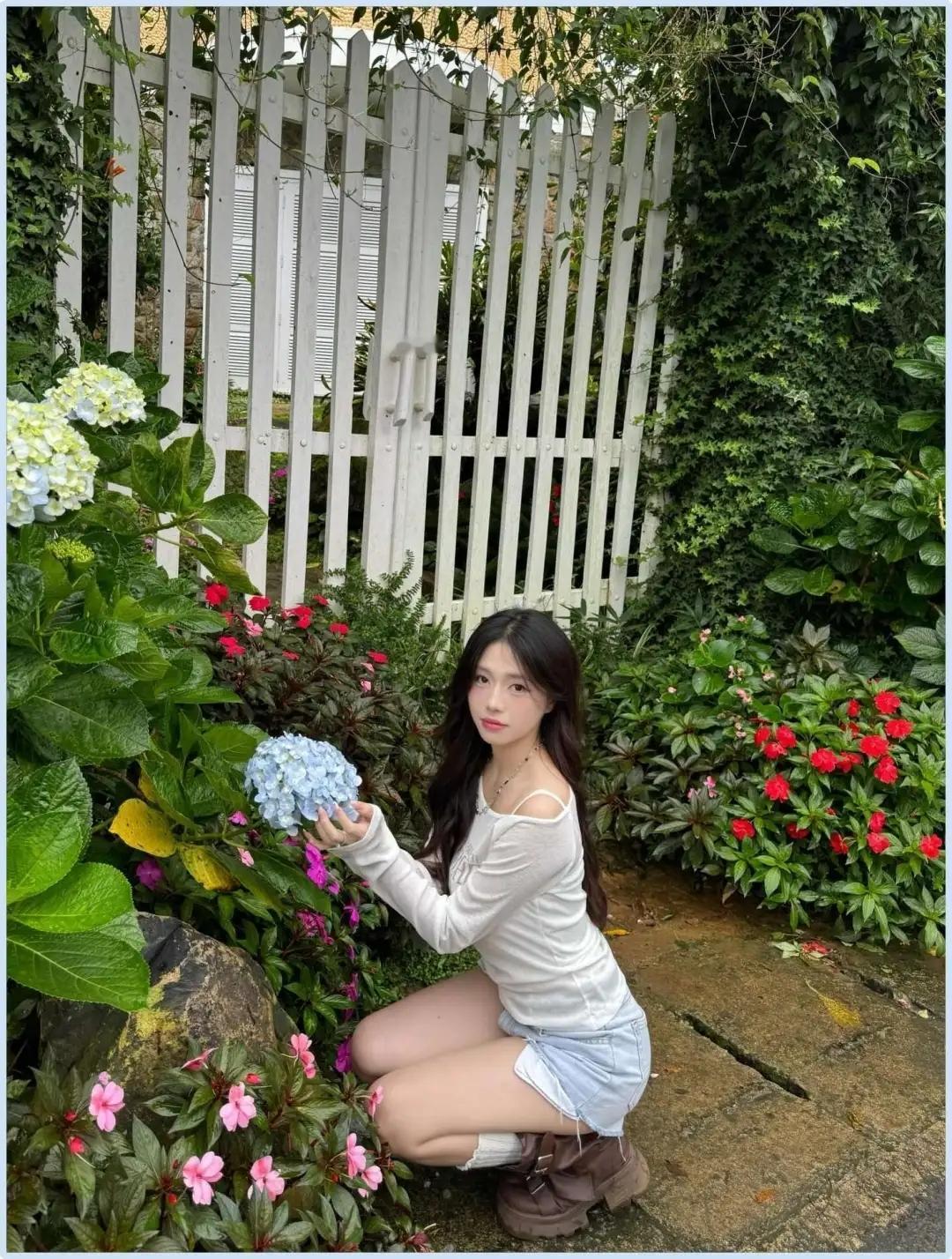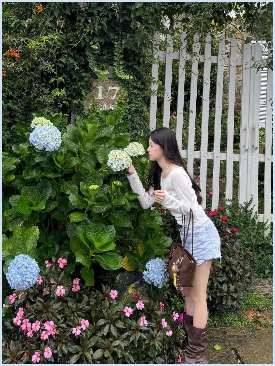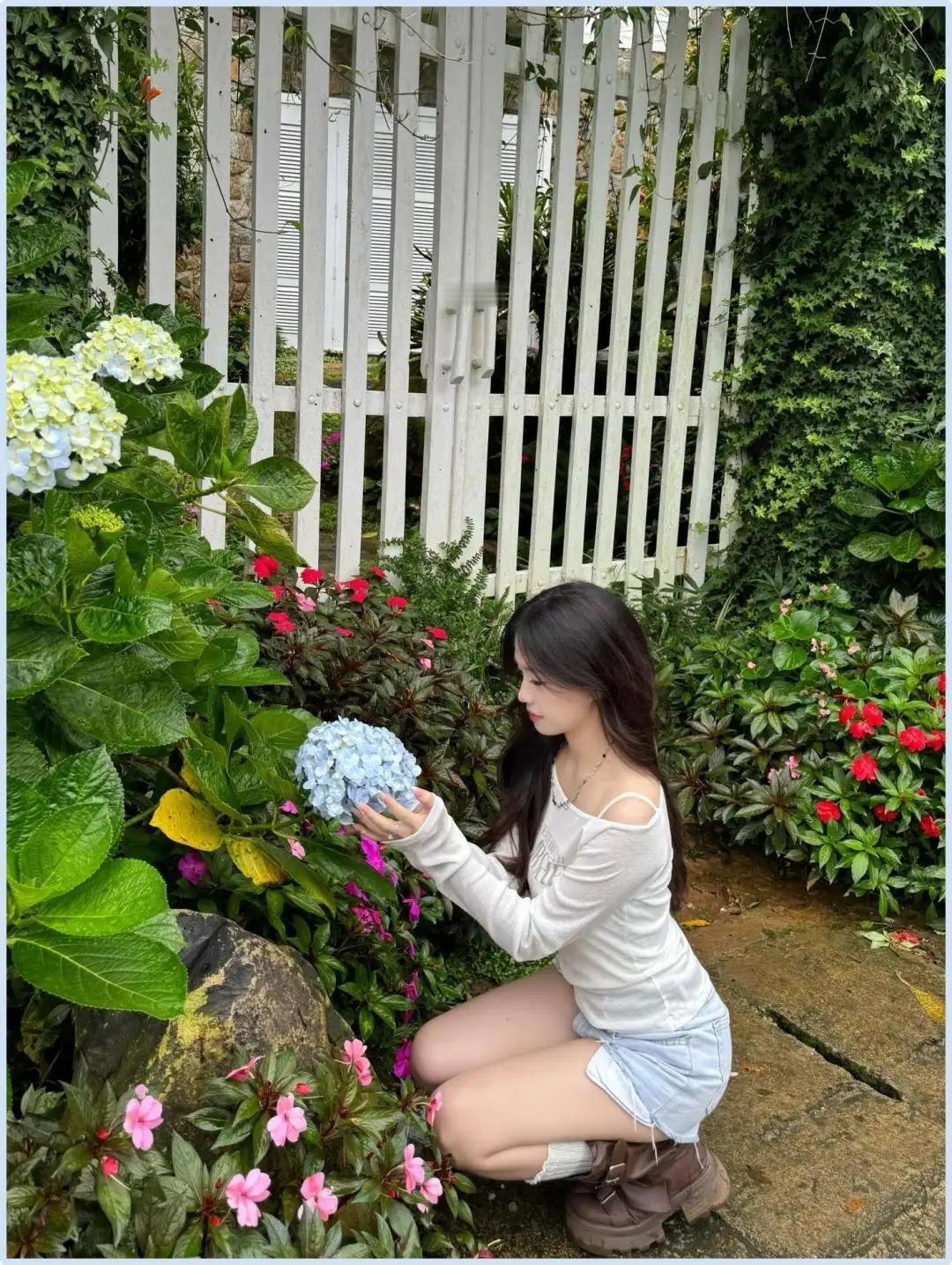 花园里偷藏了一团浅蓝色的云,连空气都浸着草木和花香的甜。