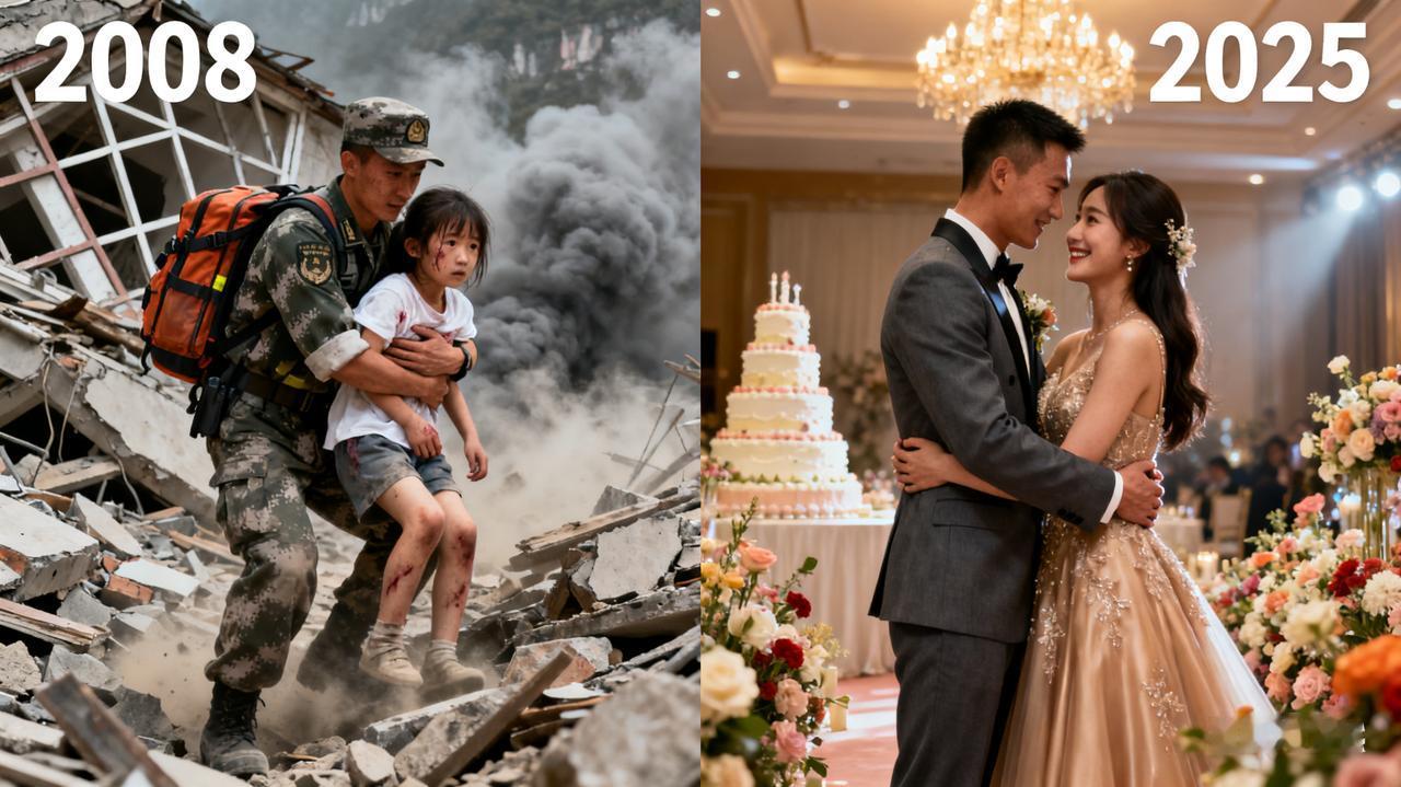 汶川地震17年,被救女孩嫁救命军人 2008年汶川地震的废墟上,10岁的刘喜美在瓦砾中绝望哭喊,一双沾满尘土的军靴突然出现在她眼前——救援战士梁智斌徒手刨开碎石,将浑身是伤的她紧紧抱出险境。那抹迷彩绿,成了她生命里最亮的光。 17年间,女孩把感恩藏进心底,军人坚守使命初心。一次偶然的重逢,让跨越岁月的缘分再续。曾经被护在怀里的小姑娘长成亭亭玉立的姑娘,当年冲锋在前的战士依旧沉稳可靠。 “当年救人是职责,现在爱她是真心”,简单的一句话,道尽深情。从废墟上的生死救援,到生活里的携手相伴,这场跨越17年的约定,是灾难中的温暖延续,更是人间最动人的双向奔赴。愿这份历经风雨的爱情,永远安稳甜蜜。