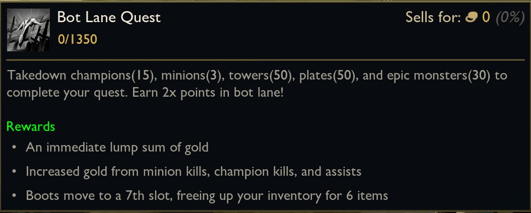 任务奖励:1、立即获得一笔金币。2、击杀小兵、击杀英雄和助攻获得的金币数量提升。3、将鞋子挪动到第七件装备格,释放常规六个装备格供其他装备使用