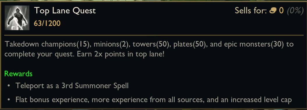 任务奖励:1、获得第三个召唤师技能[传送],如已经获得传送,则强化[传送]技能。2、等级上限提升