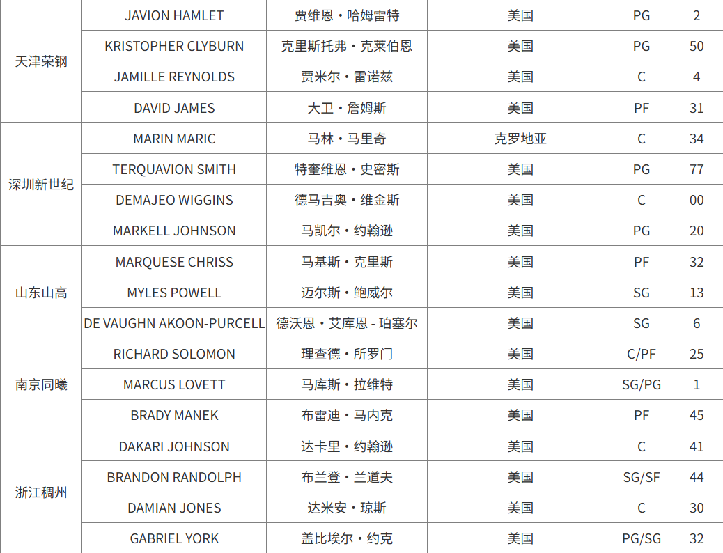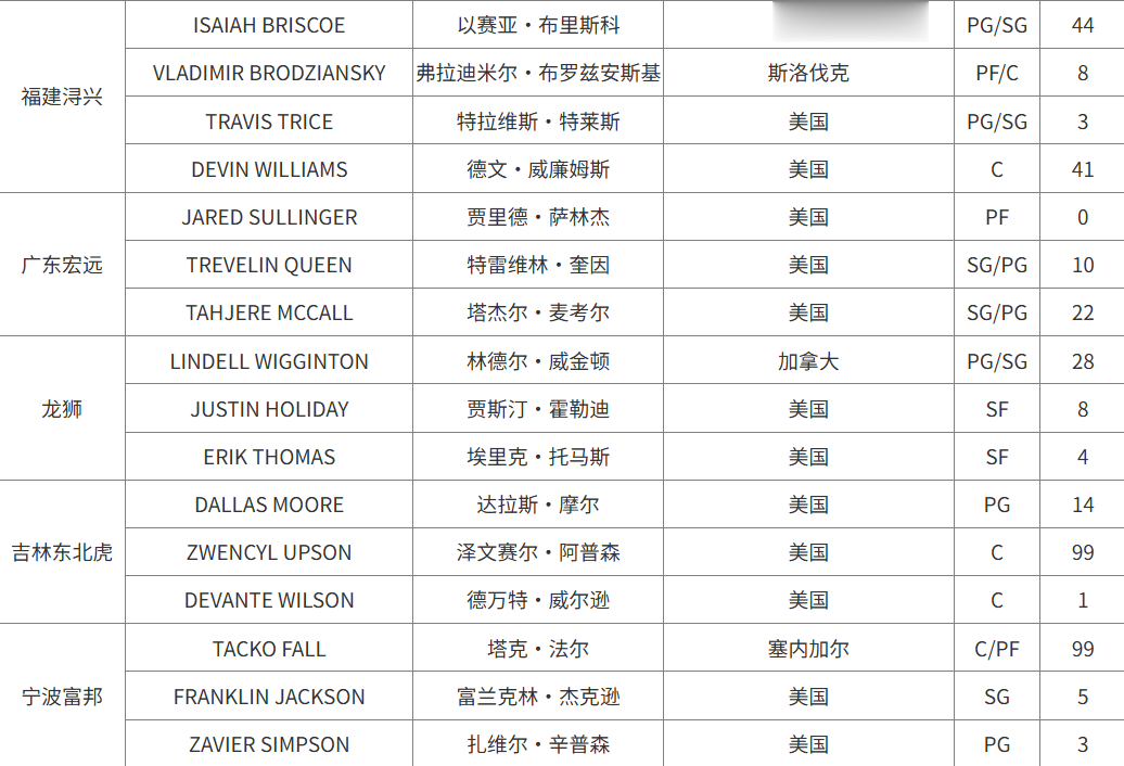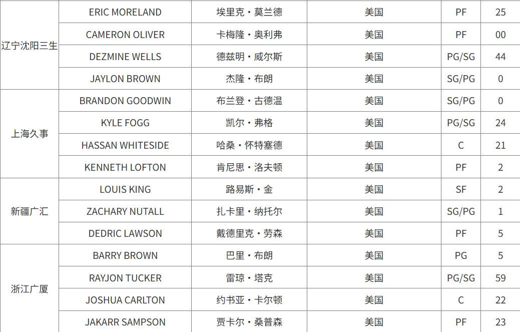 在本次注册信息中,广厦男篮、福建男篮等球队均完成四外援注册,四川男篮尚未注册外援。