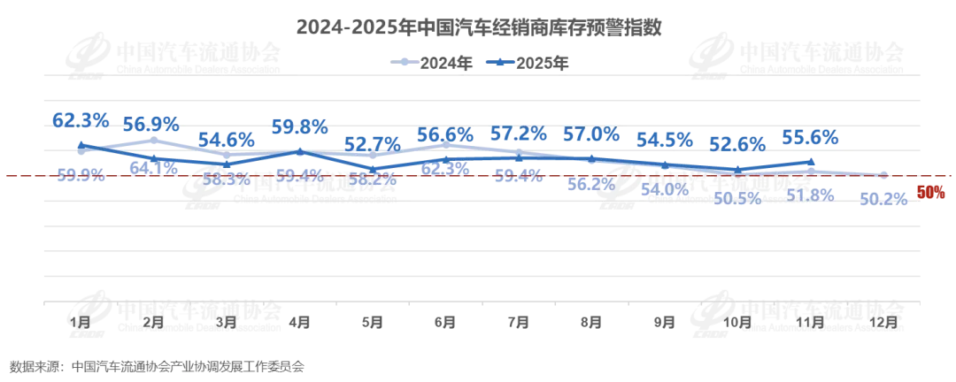 11月30日,中国汽车流通协会发布的最新一期“中国汽车经销商库存预警指数调查”VIA(VehicleInventoryAlertIndex)显示,11月中国汽车经销商库存预警指数为55.6%,同比上升3.8个百分点,环比上升3.0个百分点。库存预警指数位于荣枯线之上,汽车流通行业景气度有所下降。