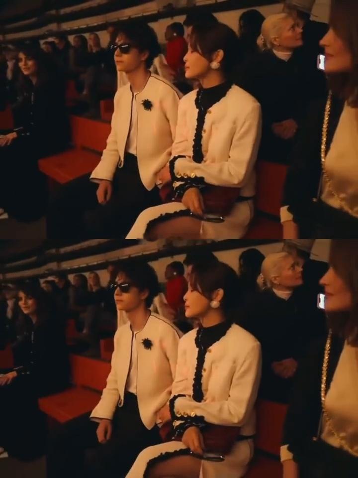 王一博香奈儿大秀路透,美版vogue也是第一时间第一条就发布了王一博物料,内场还能看到王一博和辛芷蕾聊天。