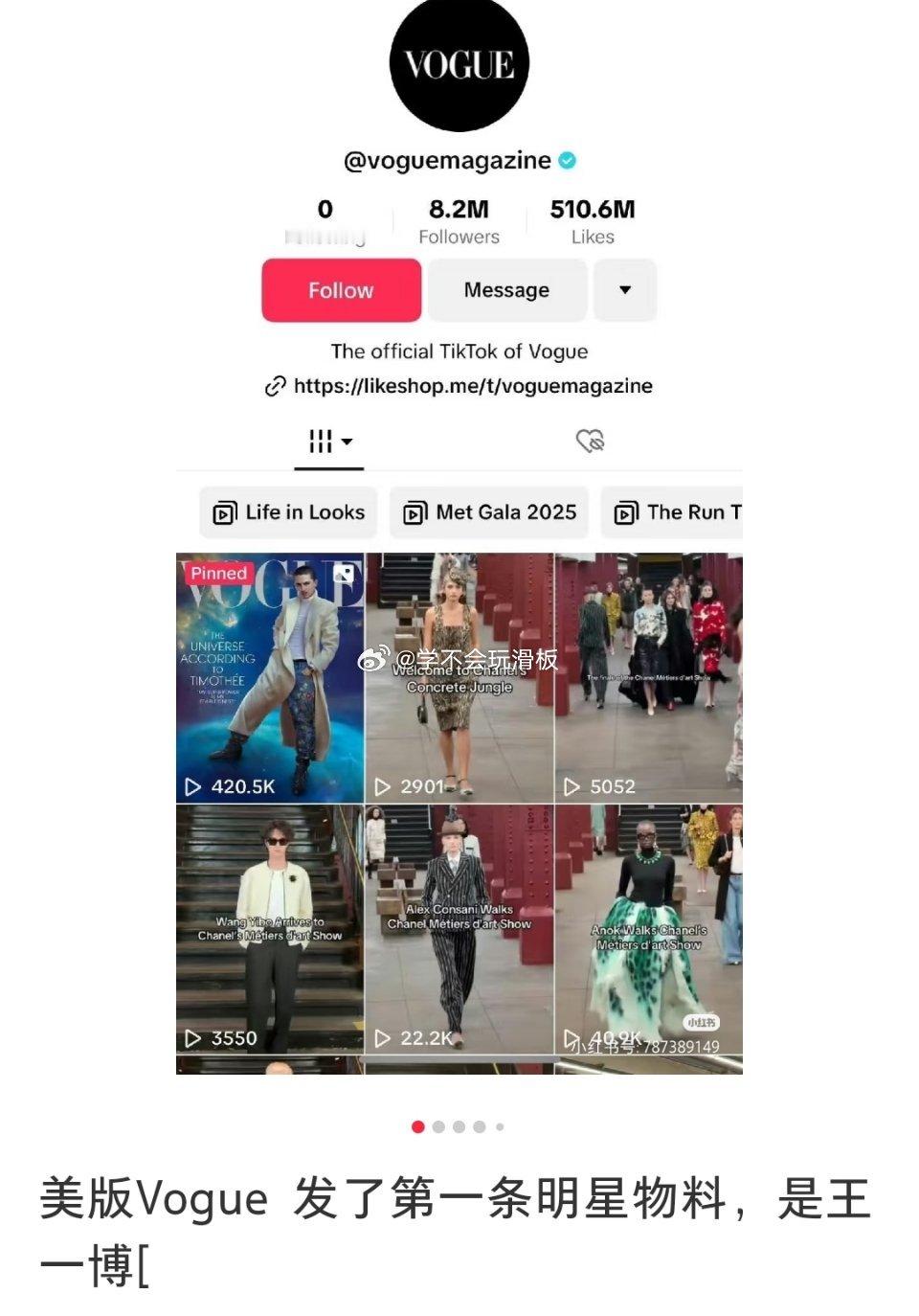王一博香奈儿大秀路透,美版vogue也是第一时间第一条就发布了王一博物料,内场还